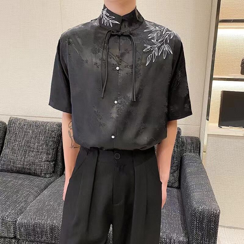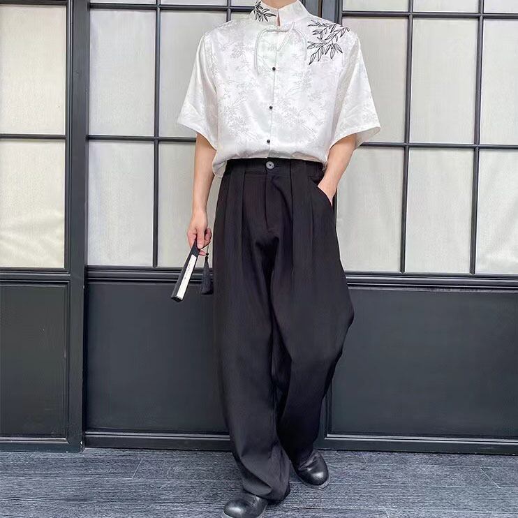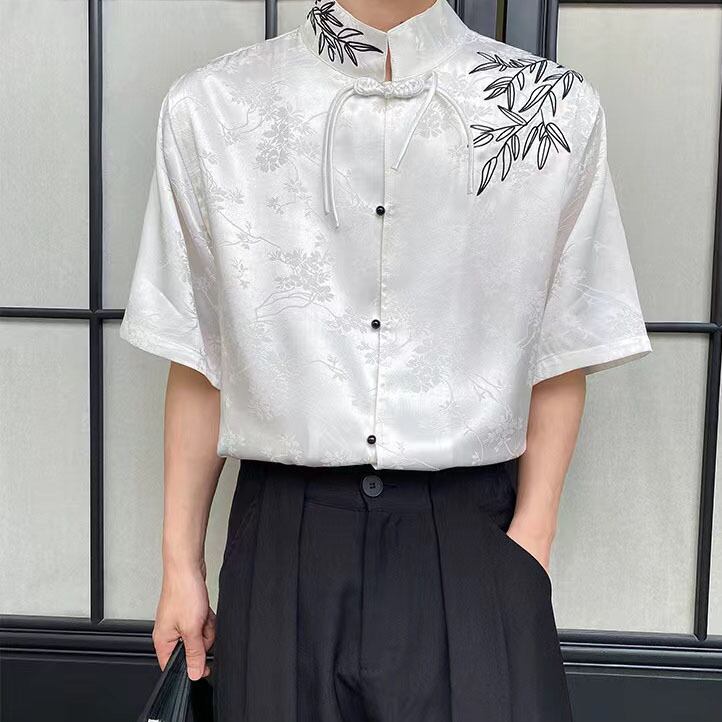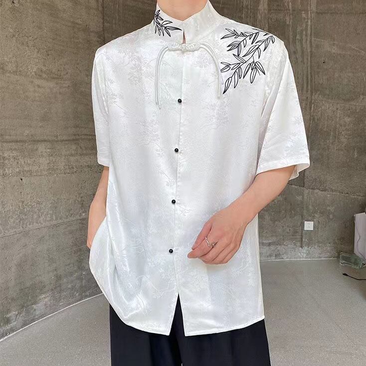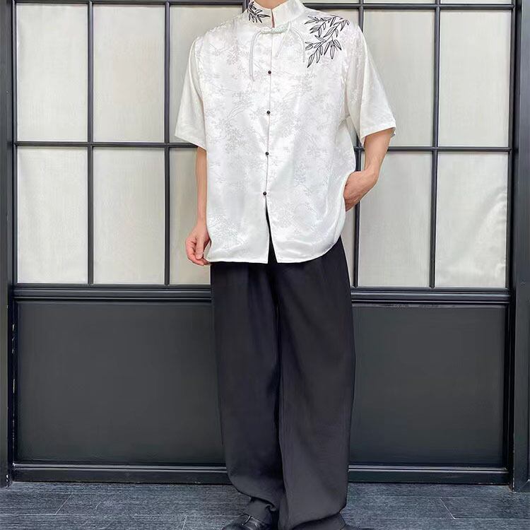 【之】★チャイナ風シャツ★ホワイト ブラック メンズ 竹 結び目ボタン
