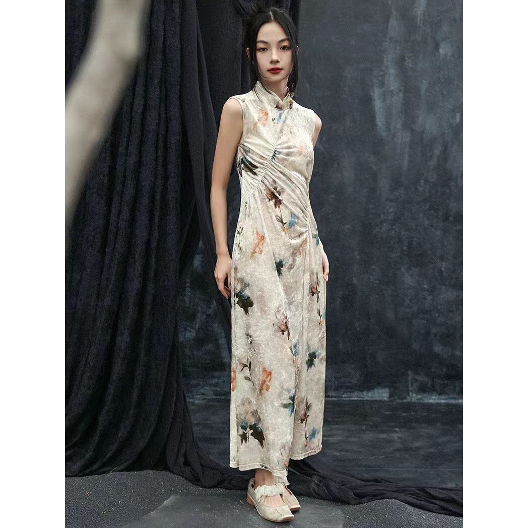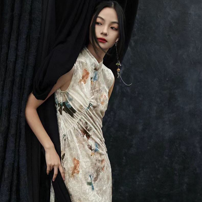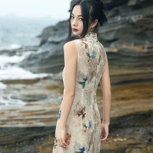 ◇蝶噛み砕宇宙◇【之x大青龍肆】★ワンピース★ベージュ レディース服 プリント