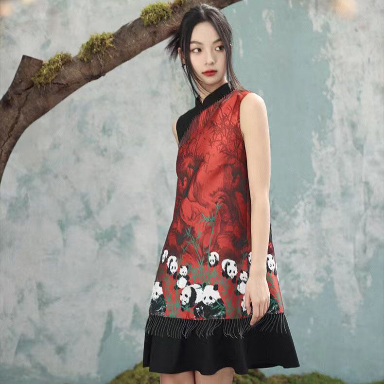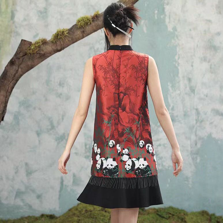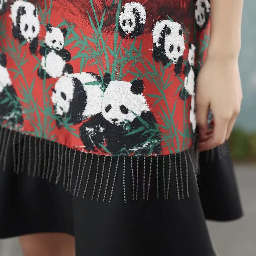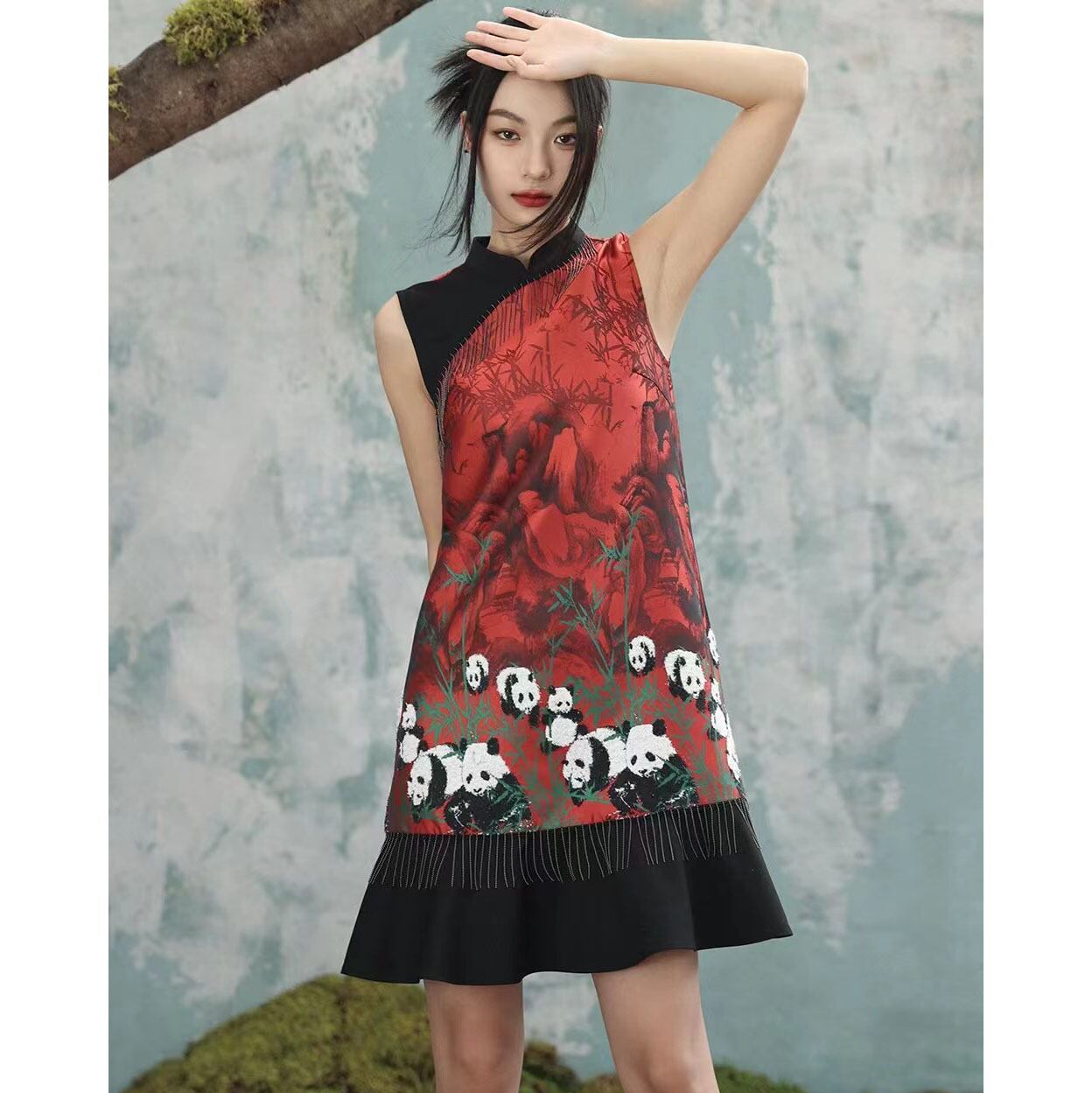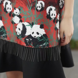 ◇蝶噛み砕宇宙◇【之x大青龍肆】★ワンピース★レッド レディース服 プリント パンダ