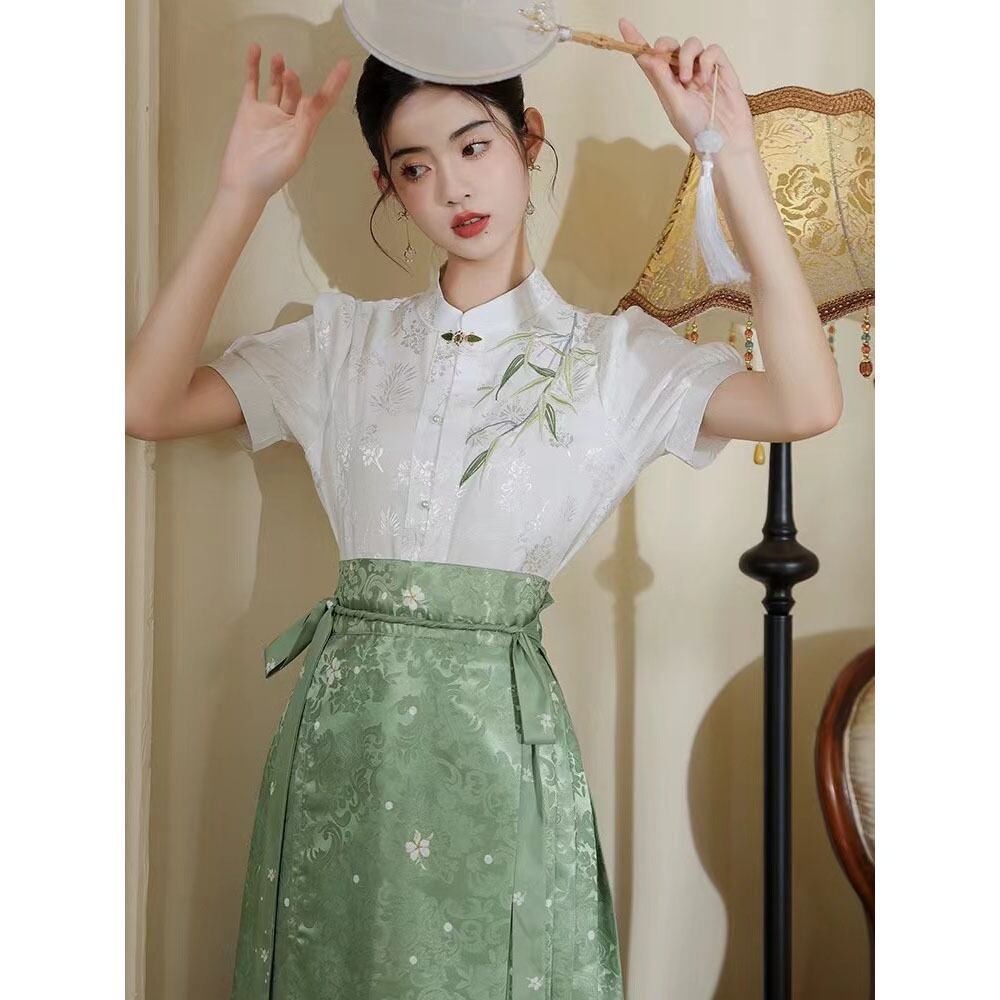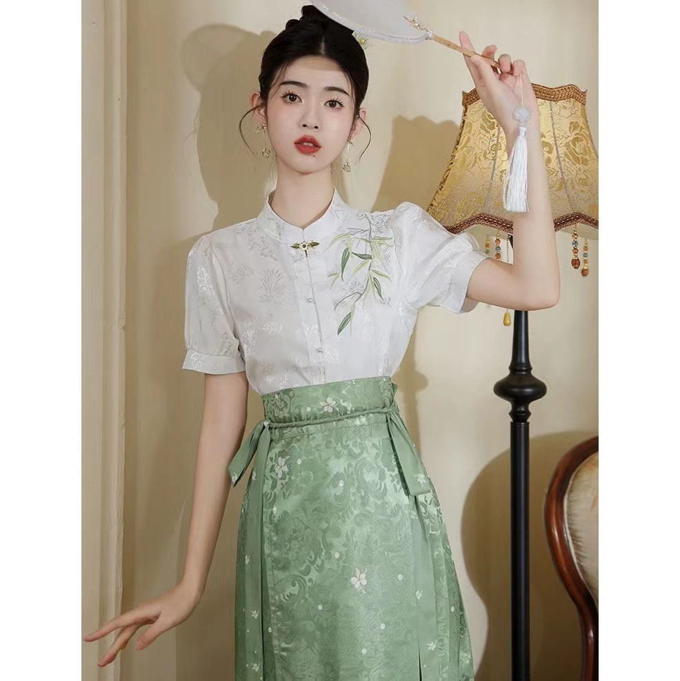 【之】★シャツ★ホワイト 合わせやすい カジュアル 竹 刺繍