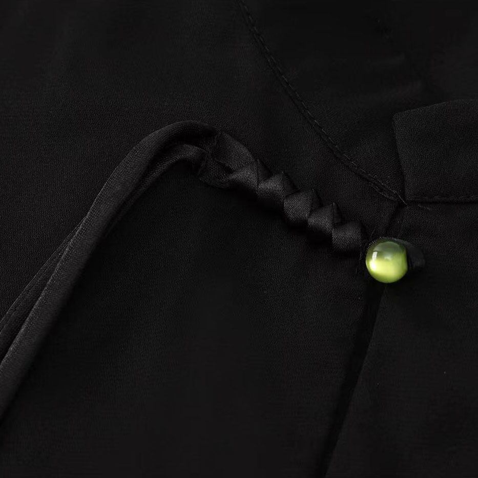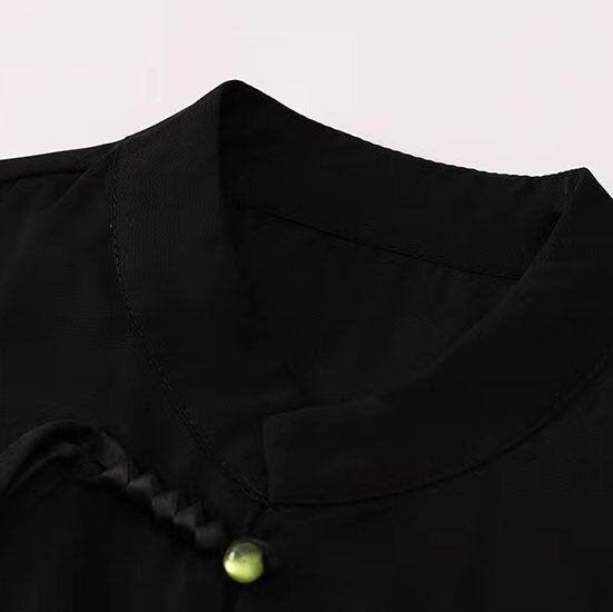 【之】★シャツ★ブラック チャイナ風 カジュアル 結び目ボタン