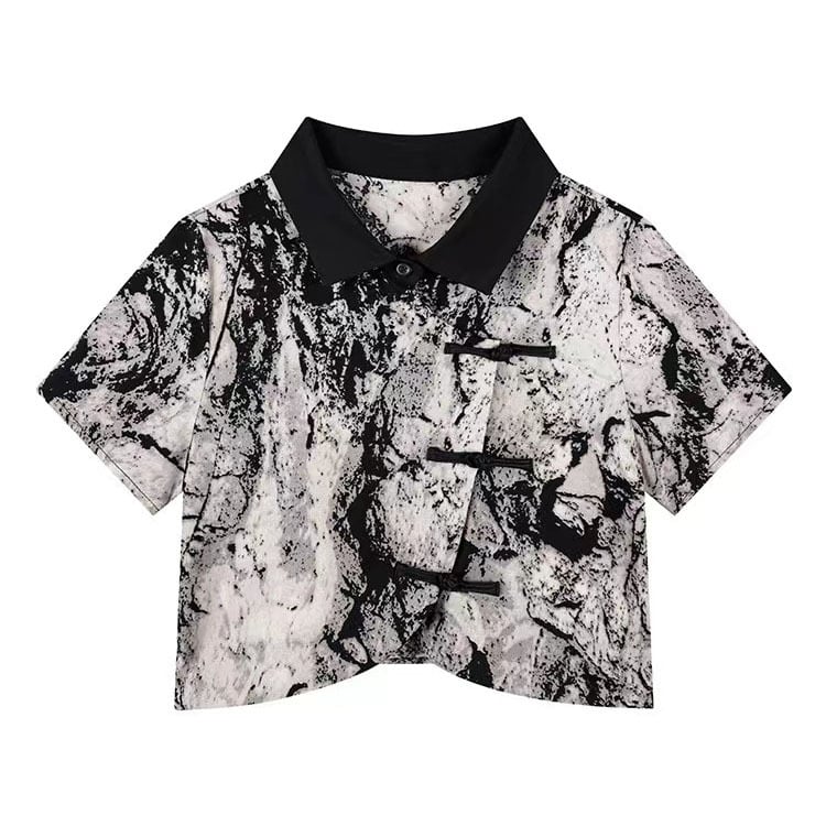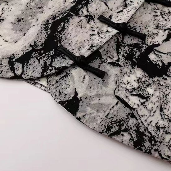 【之】★シャツ★ブラック チャイナ風 カジュアル 結び目ボタン 水墨