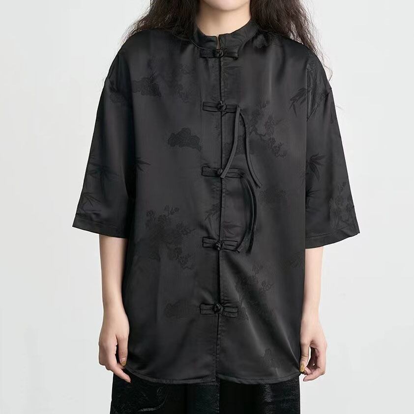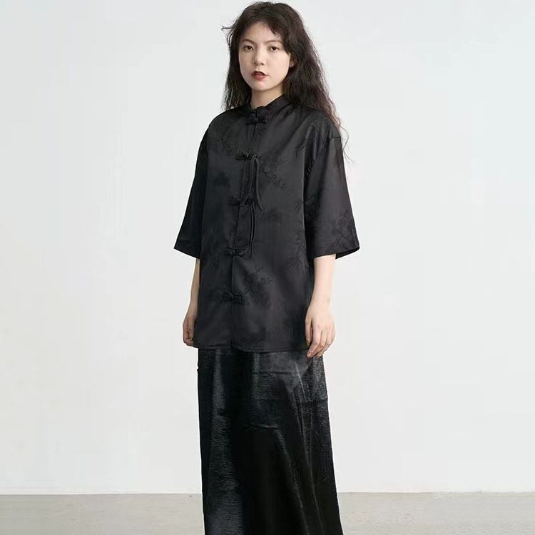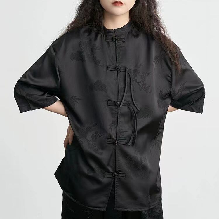 【之】★シャツ★ブラック チャイナ風 カジュアル 結び目ボタン | 之