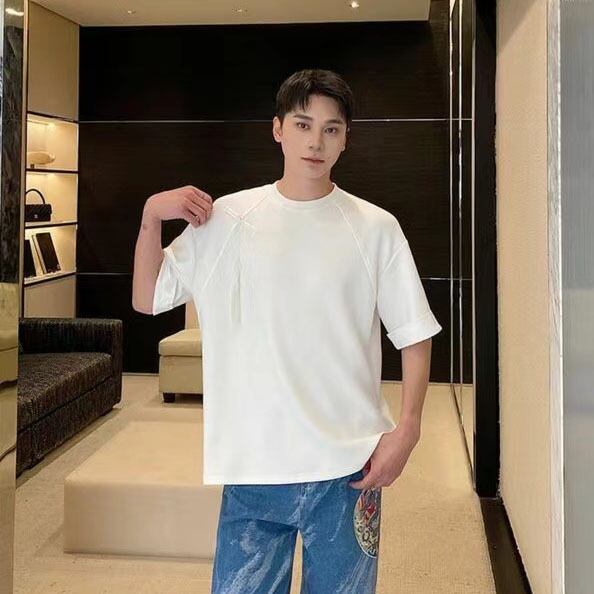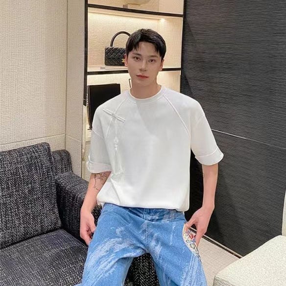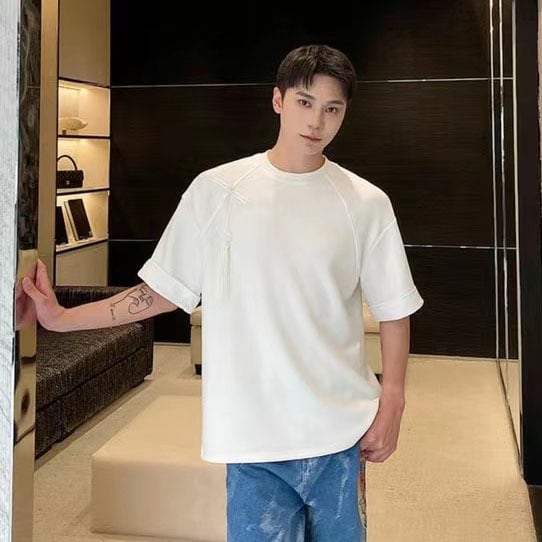 【之】★チャイナ風Tシャツ★ホワイト ブラック メンズ タッセル ファッション | 之