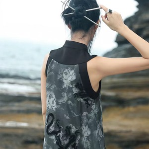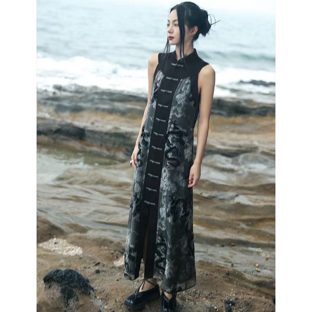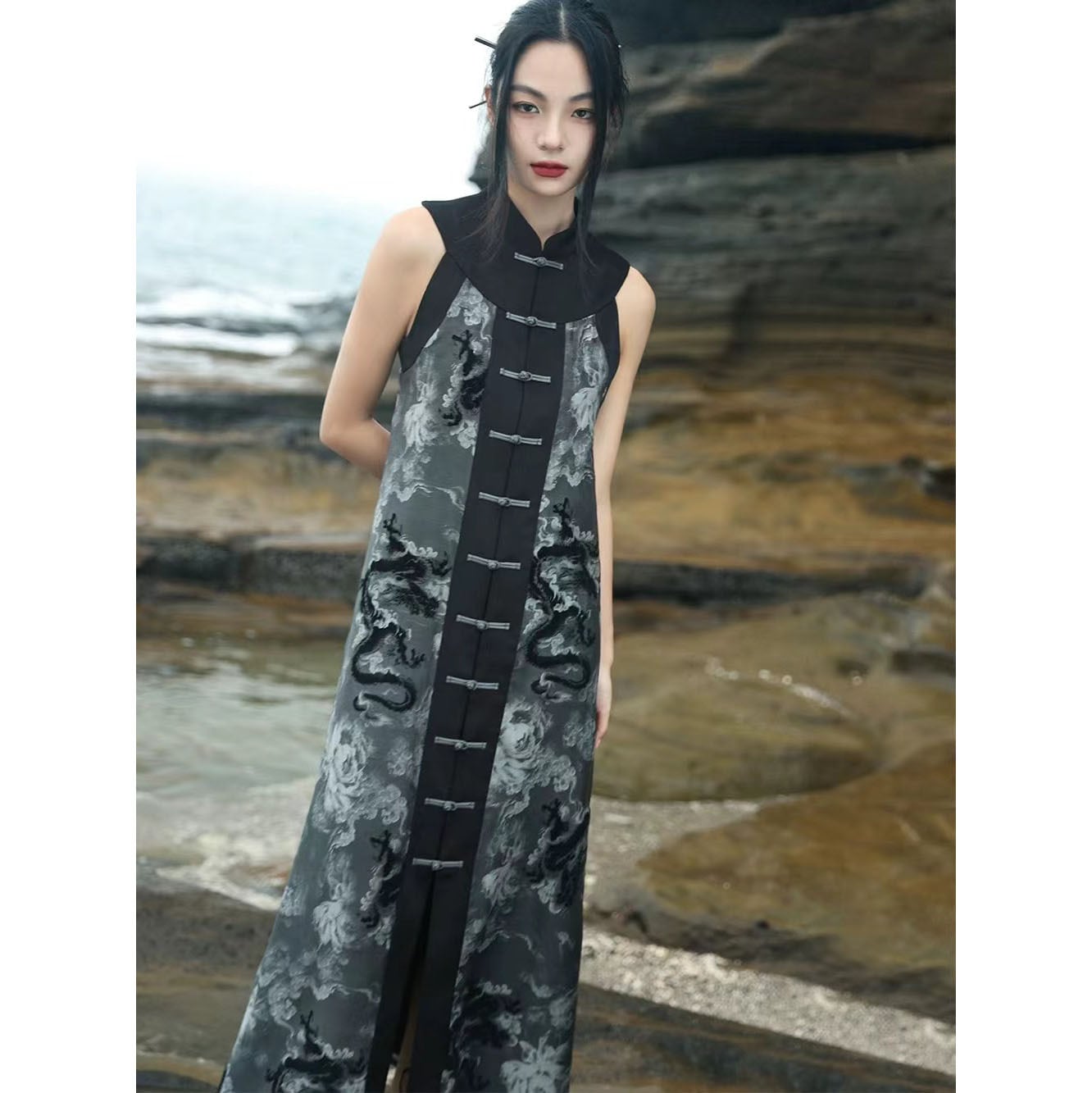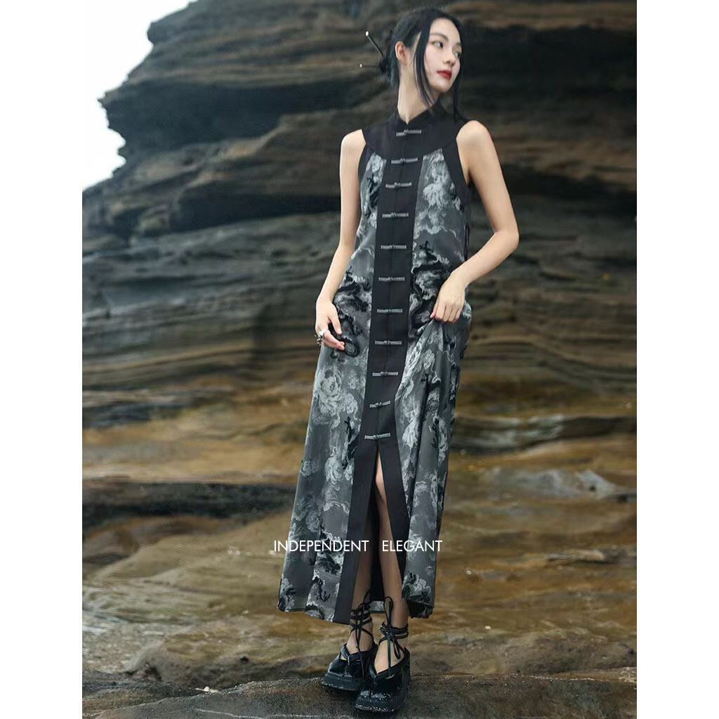 ◇万里寂星◇【之x大青龍肆】★ワンピース★グレー レディース服 結び目ボタン 二次会 女子会 成人式