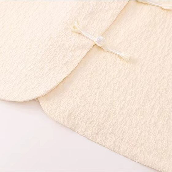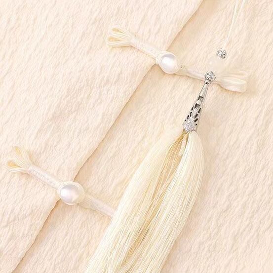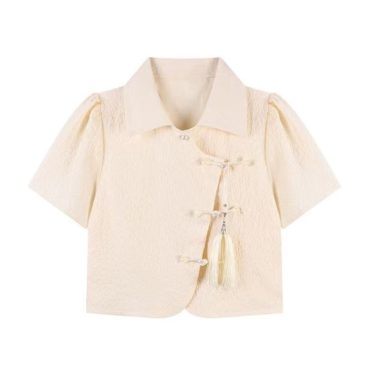 【之】★シャツ★ベージュ カジュアル 結び目ボタン タッセル