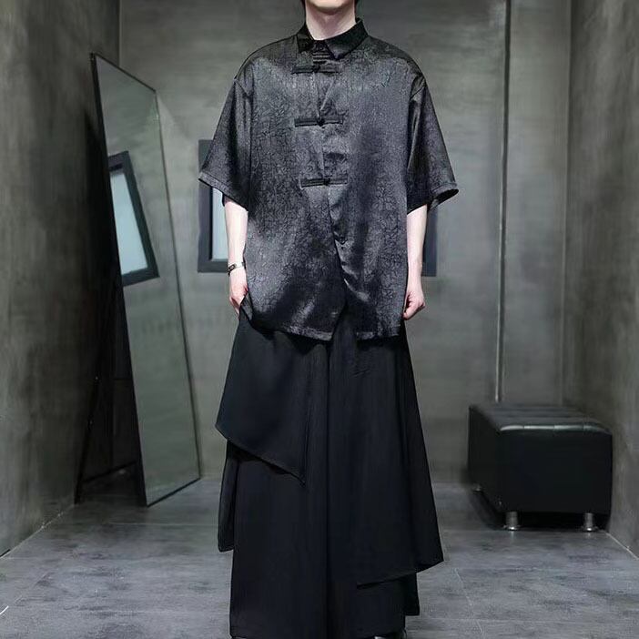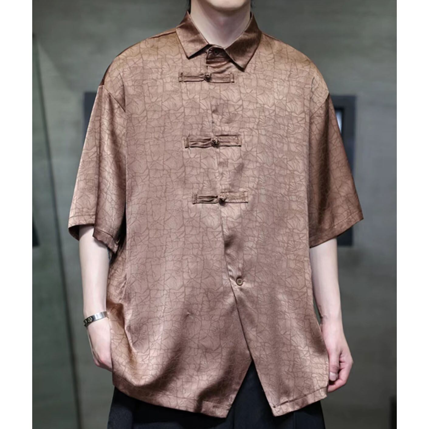 【之】★シャツ★ブラック コーヒー色 カジュアル 結び目ボタン | 之