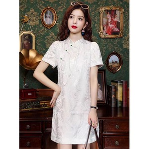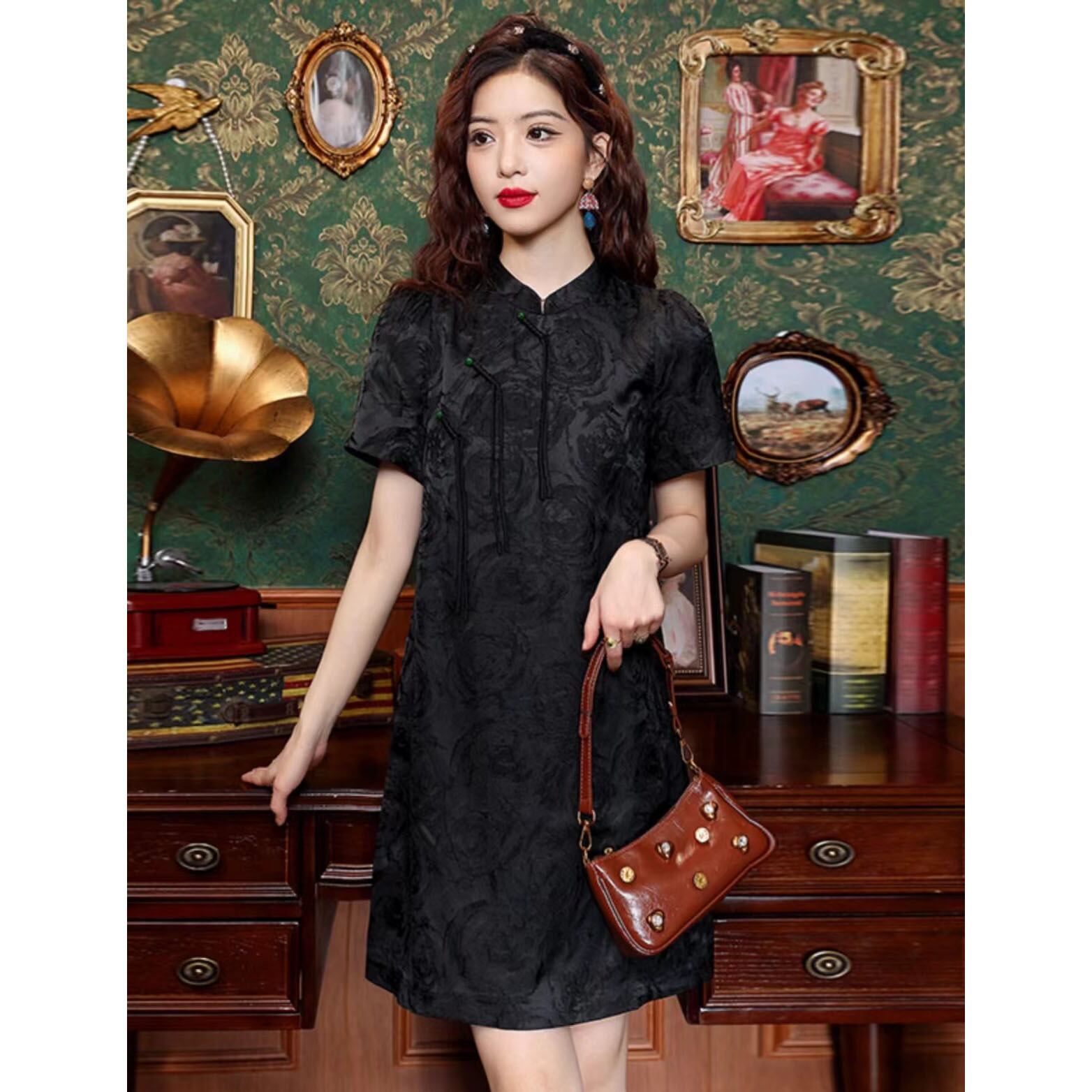 【之】★ワンピース★ホワイト ブラック 合わせやすい カジュアル 結び目ボタン 花柄