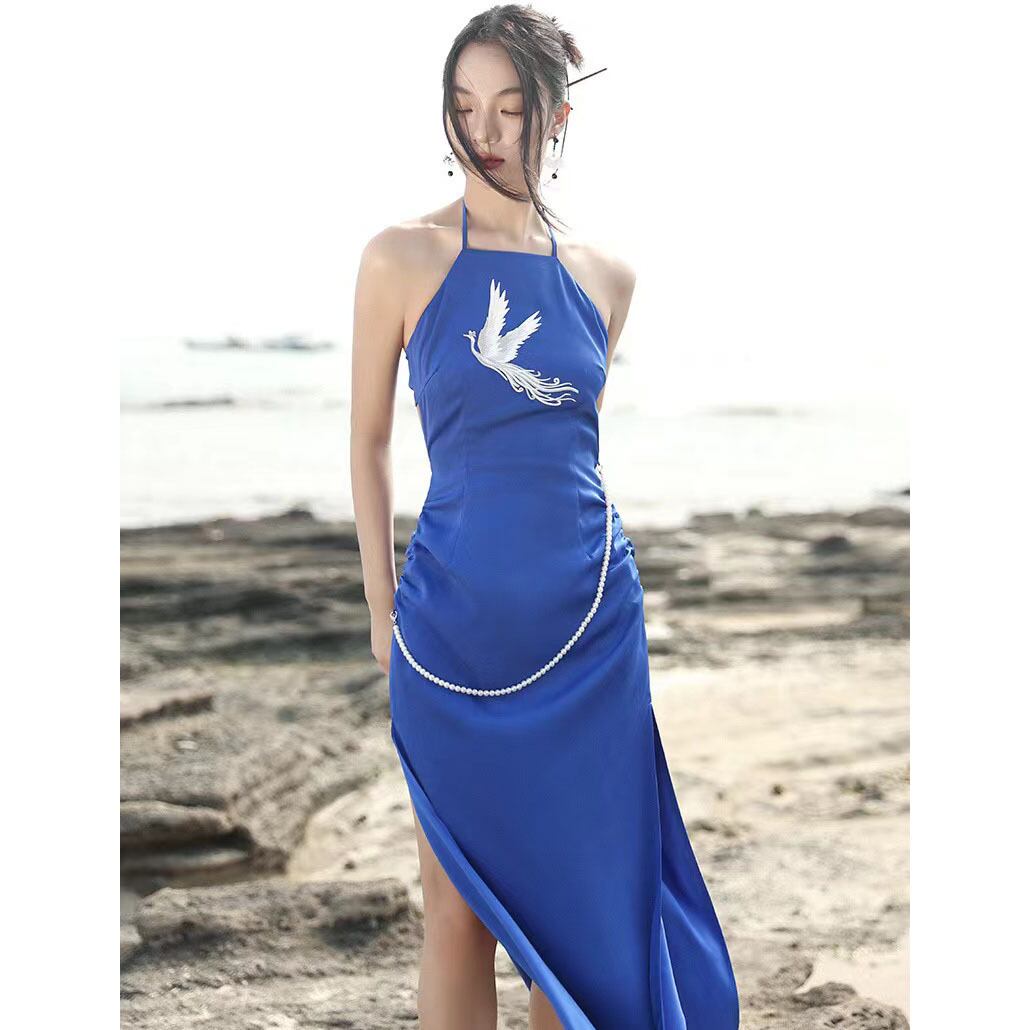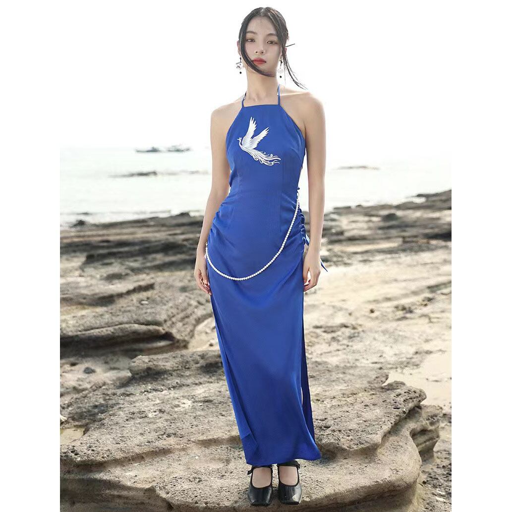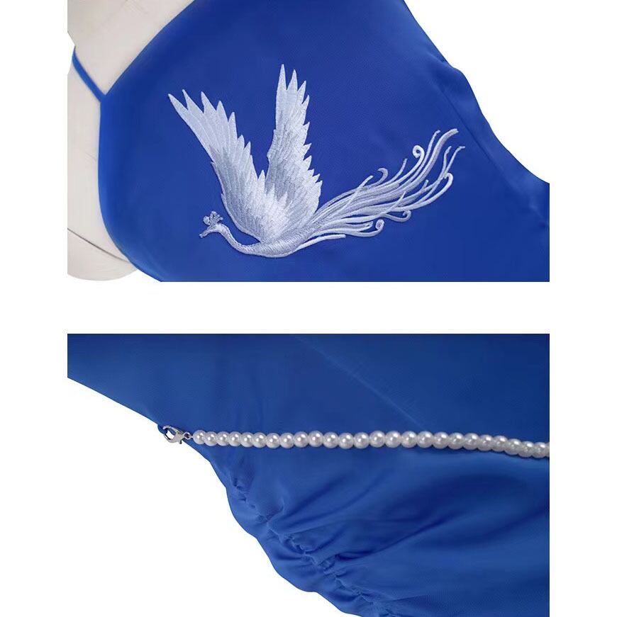 ◇菩提◇【之x大青龍肆】★ワンピース★ブルー レディース服 二次会 女子会 成人式 鶴柄