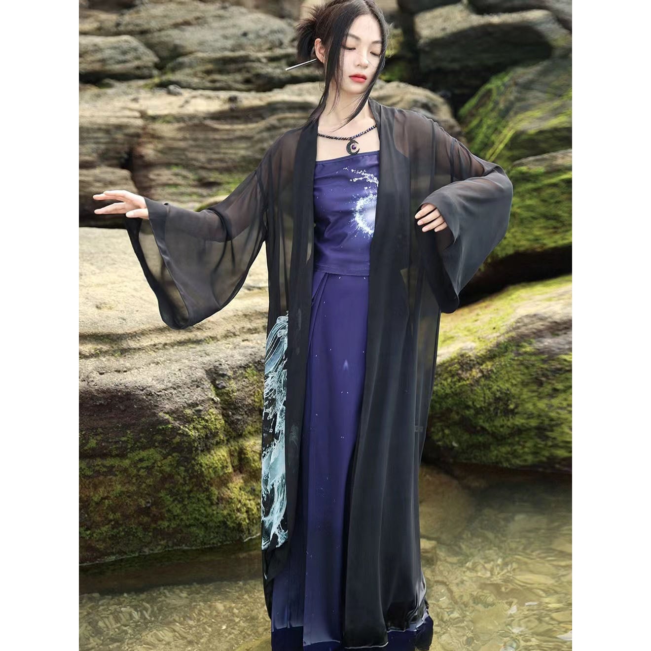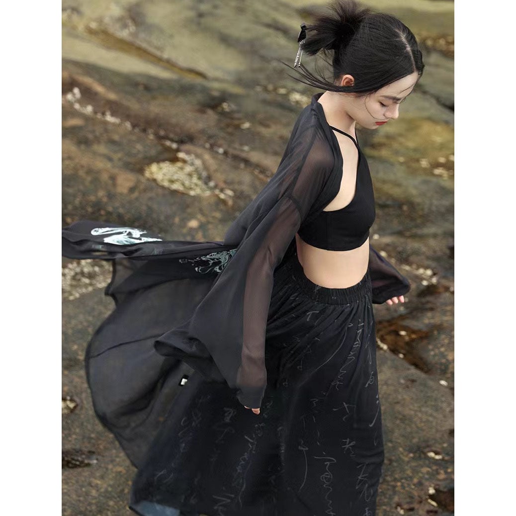 ◇菩提◇【之x大青龍肆】★ロングシャツ★ブラック レディース服 二次会 女子会 成人式 龍柄