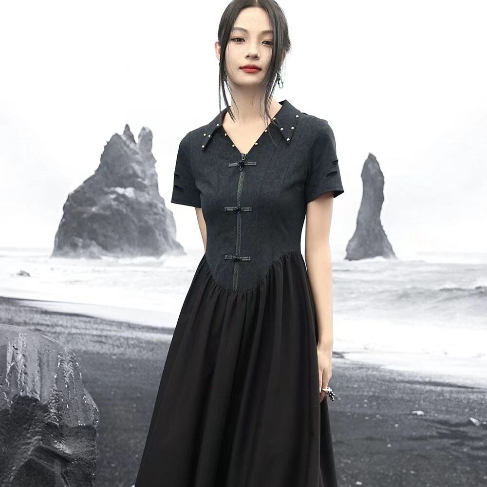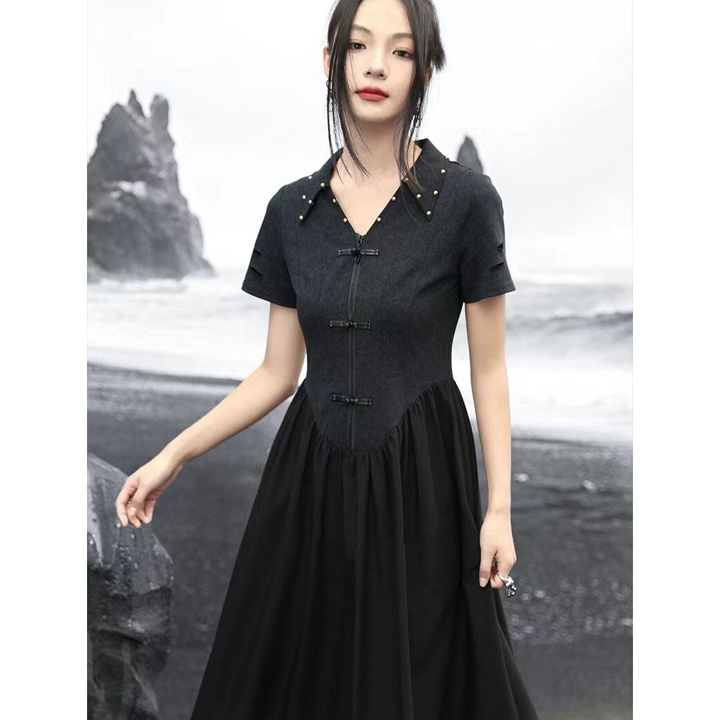 ◇菩提◇【之x大青龍肆】★ワンピース★ブラック レディース服 二次会 女子会 成人式 結び目ボタン