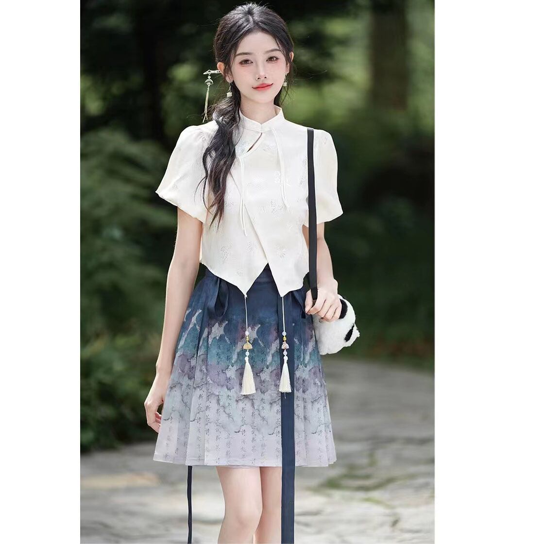 【之】★シャツ★ベージュ 合わせやすい カジュアル 結び目ボタン 花柄
