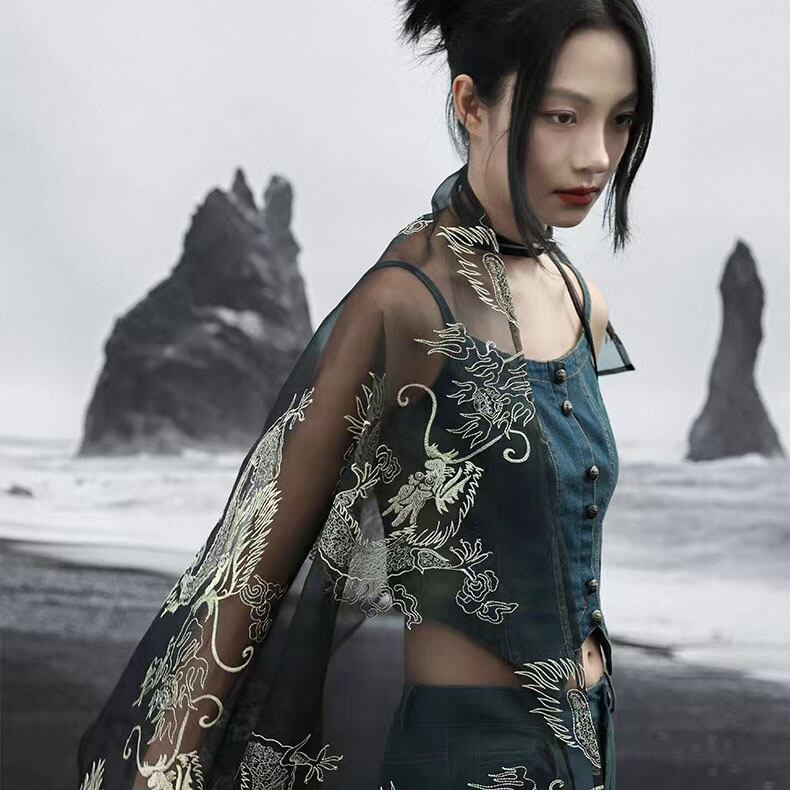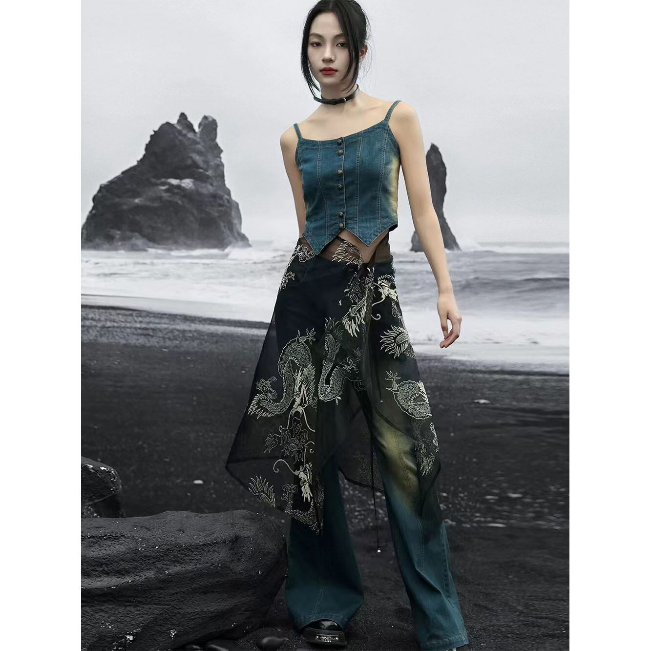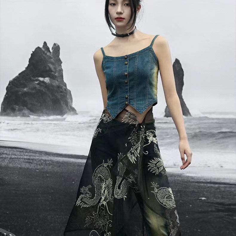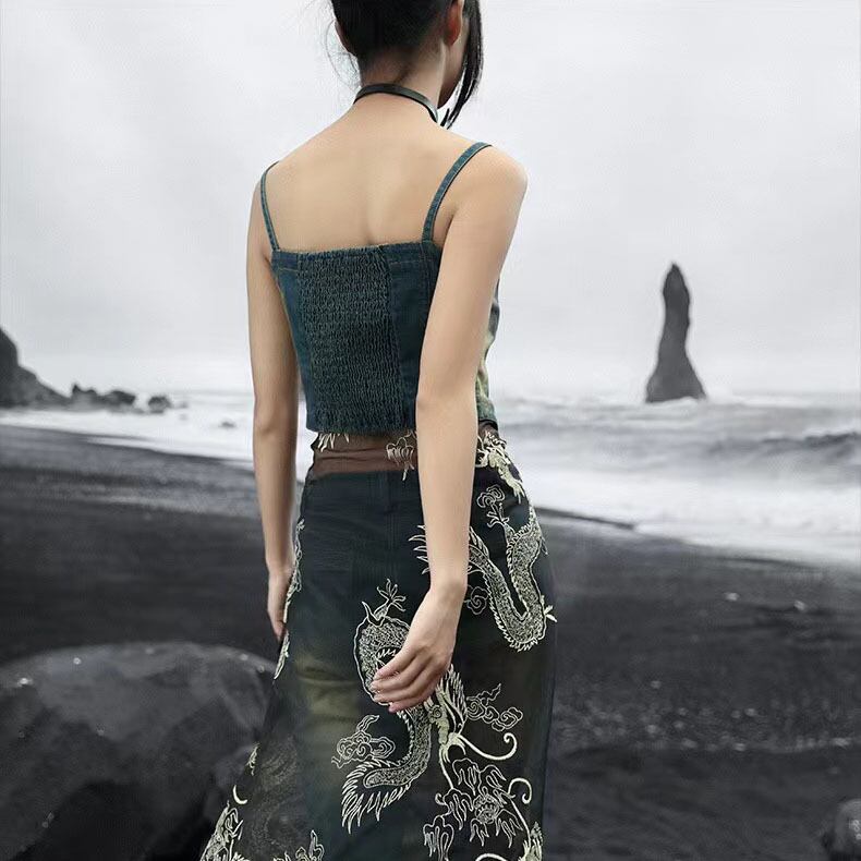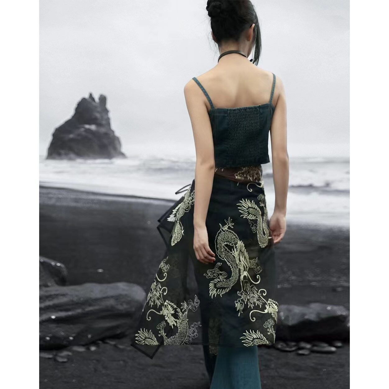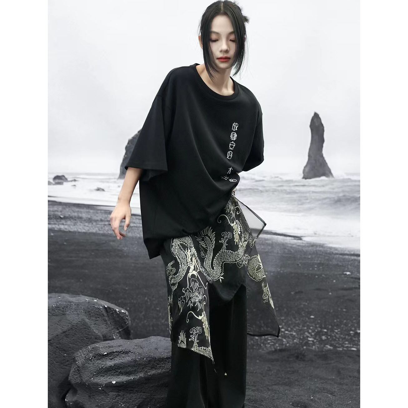 ◇注目◇【之x大青龍肆】★スカート★ブラック レディース服 二次会 女子会 成人式 レイヤード風 龍柄