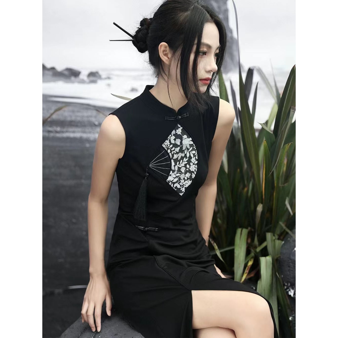 ◇注目◇【之x大青龍肆】★ワンピース★ブラック レディース服 二次会 女子会 成人式 タッセル 扇子
