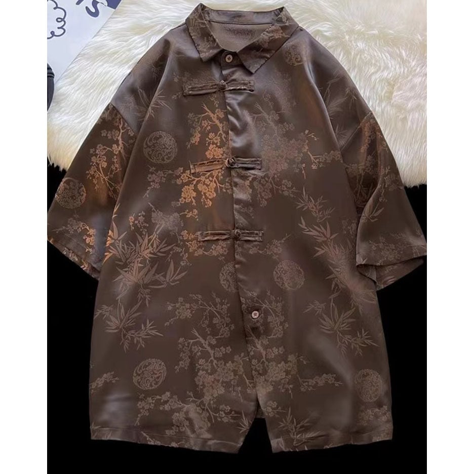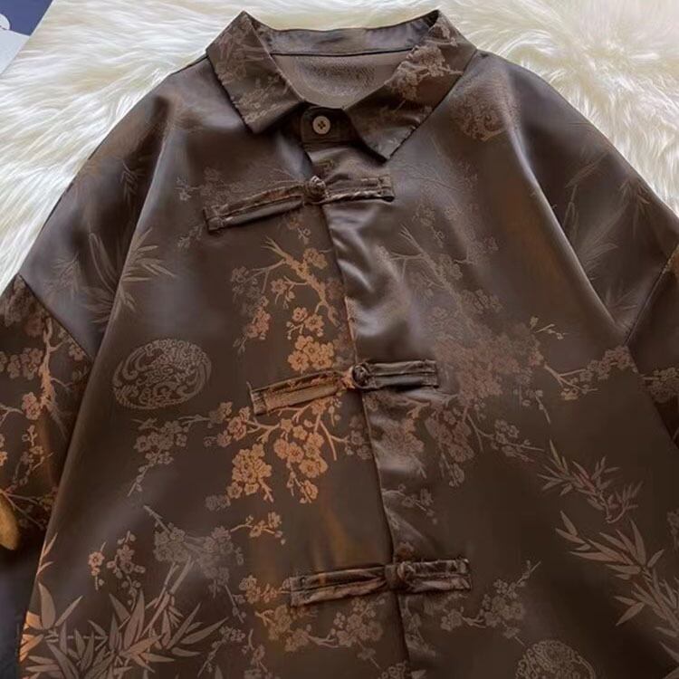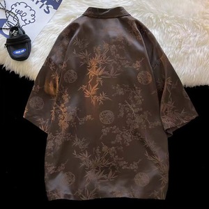 【之】★シャツ★ブラウン プリント vintage 結び目ボタン 花柄 | 之