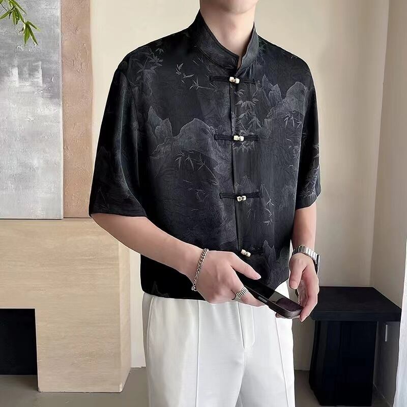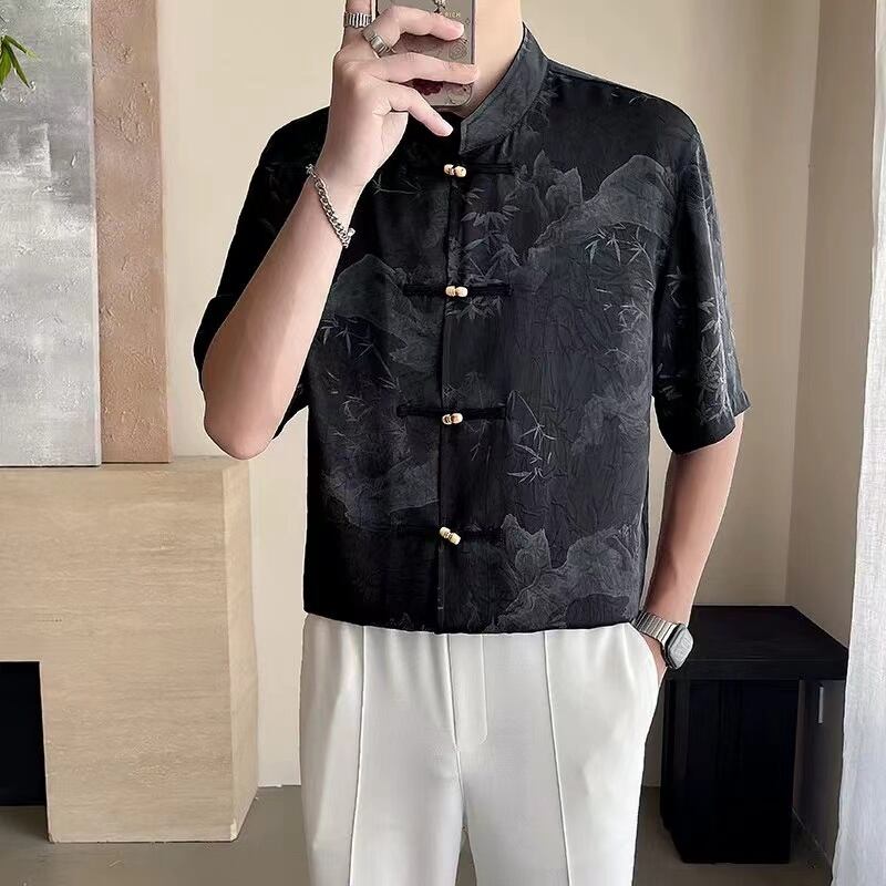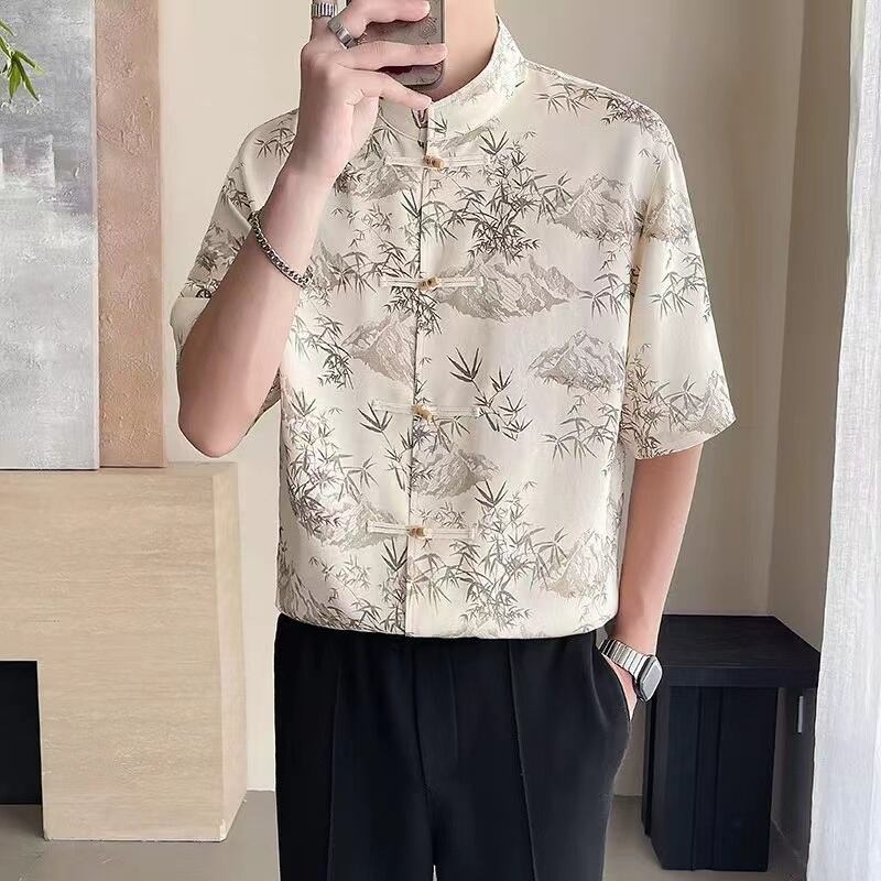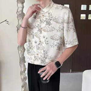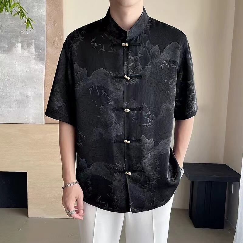 【之】★シャツ★ブラック ベージュ vintage 結び目ボタン 竹 | 之