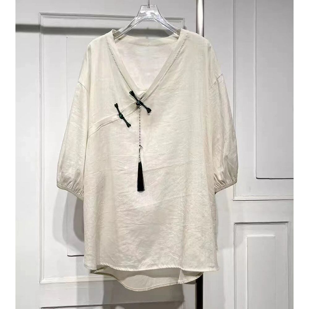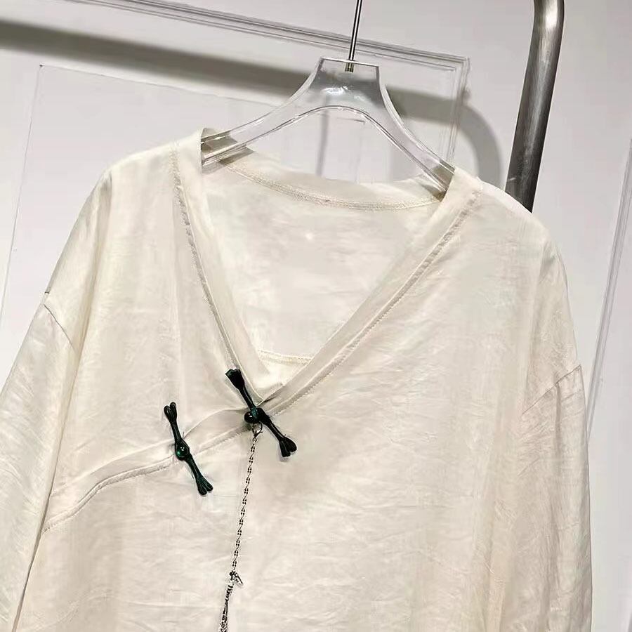 【之】★Tシャツ★ブラック ホワイト ベージュ 合わせやすい カジュアル ファッション 結び目ボタン
