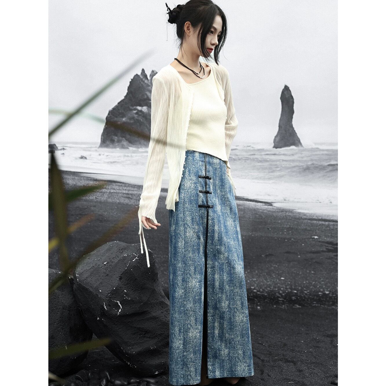 ◇迷途◇【之x大青龍肆】★スカート★ブルー 結びボタン チャイナ レディース