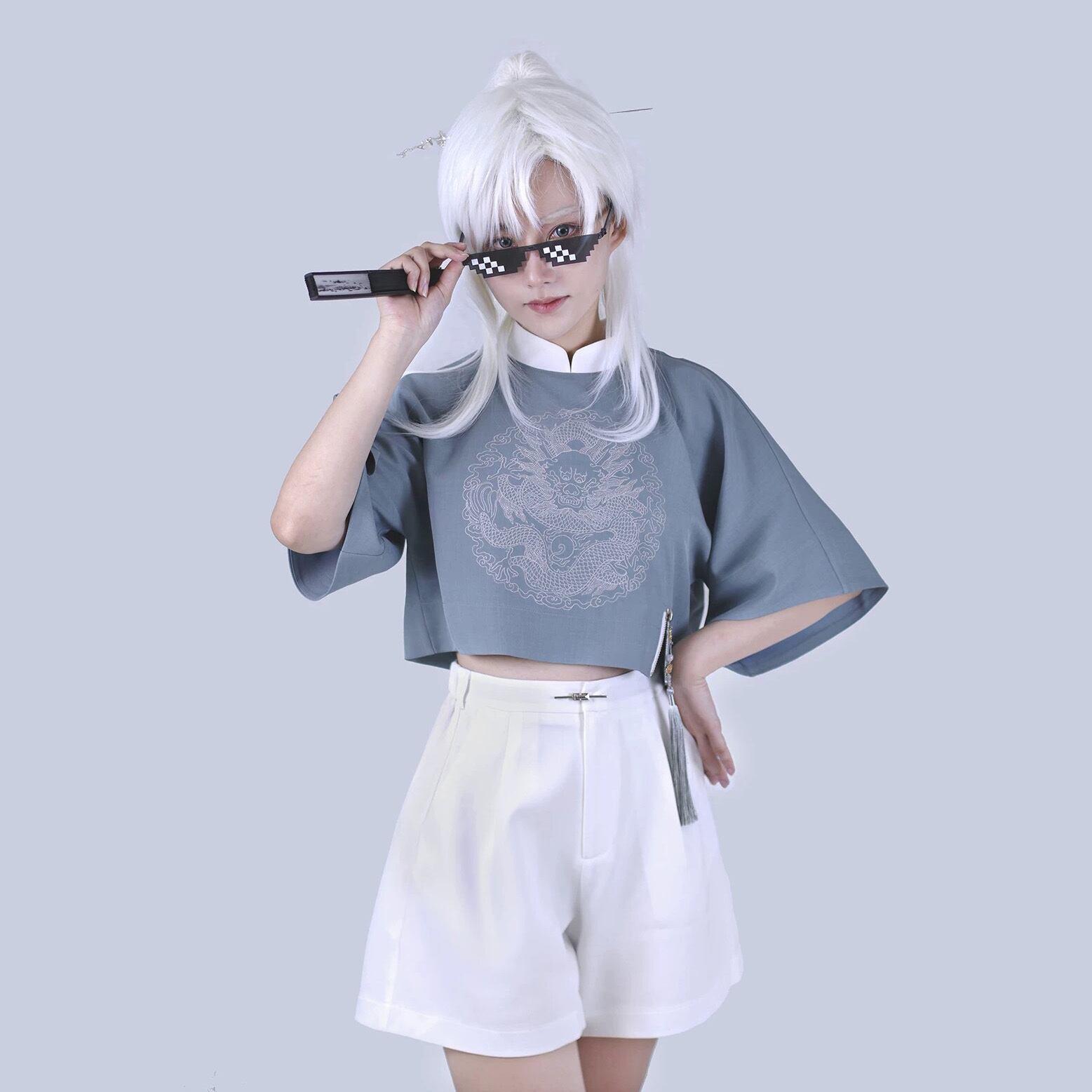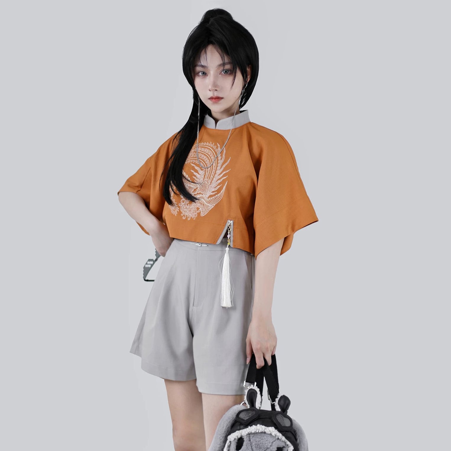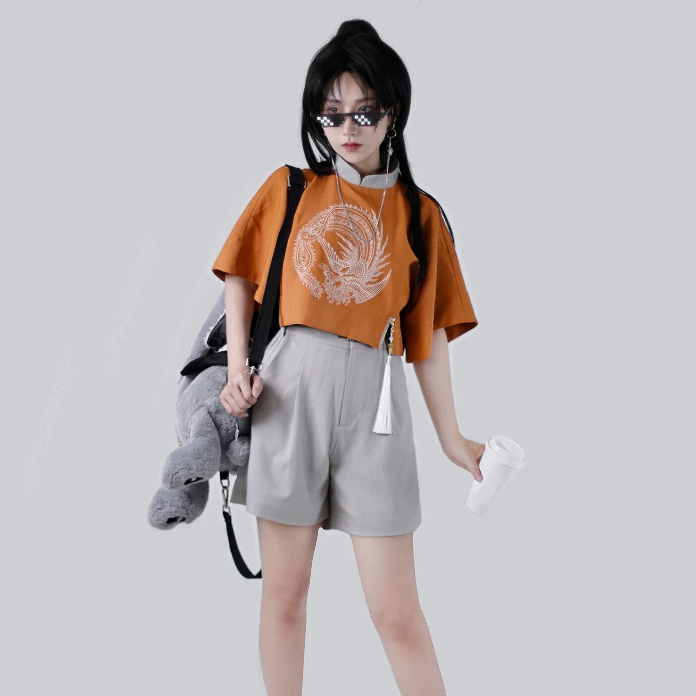 【之】★Tシャツ★4色入り チャイナ 刺繍 結びボタン レディース 中国ファッション