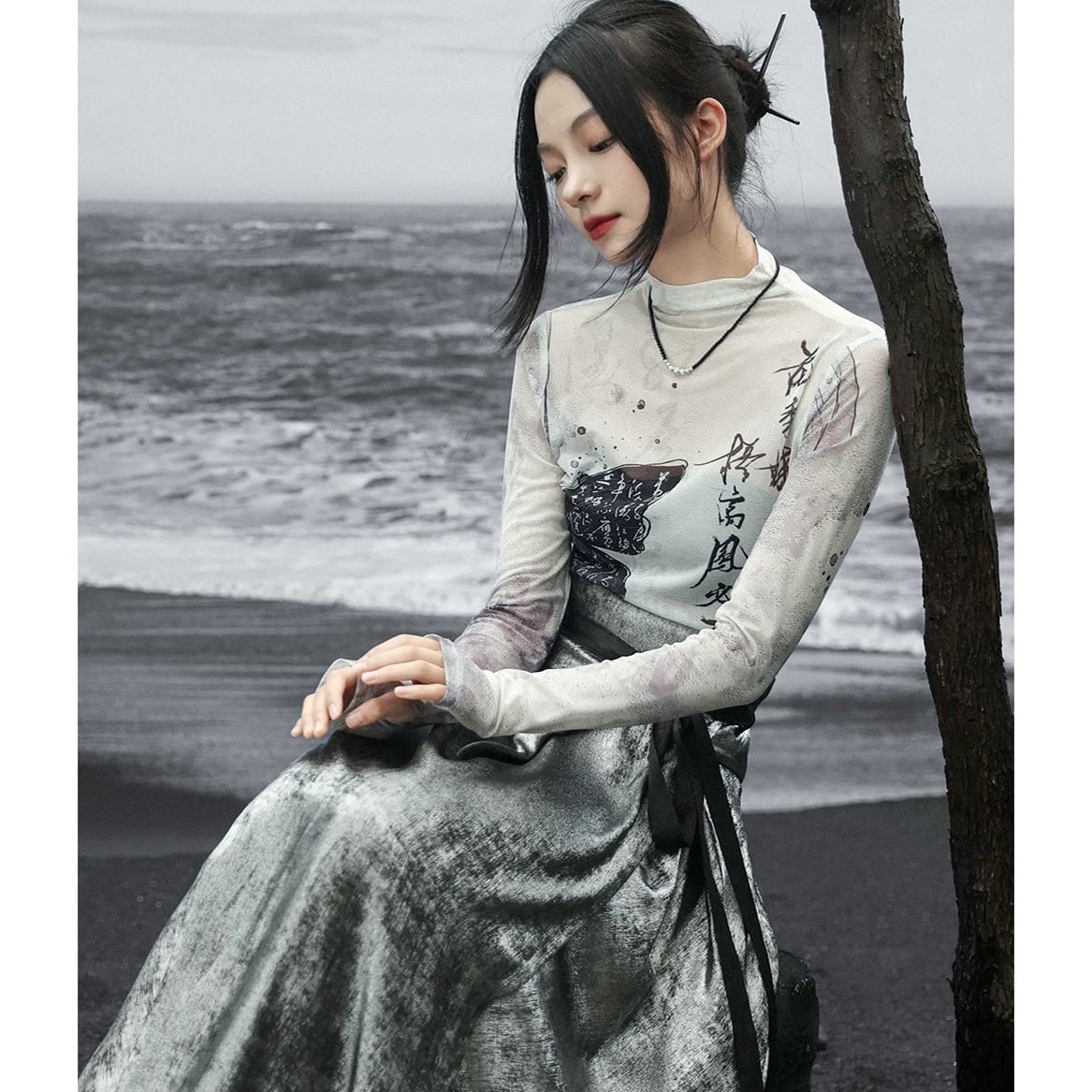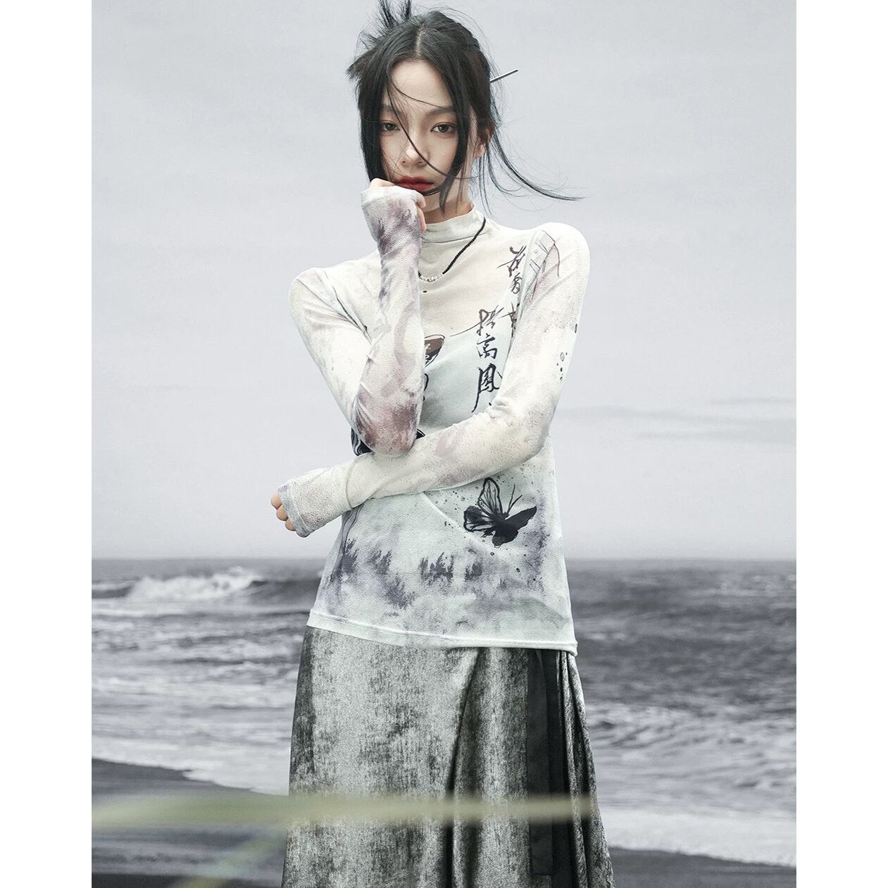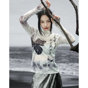 ◇セミ◇【之x大青龍肆】★Tシャツ★ホワイト インナー チャイナ プリント 長袖