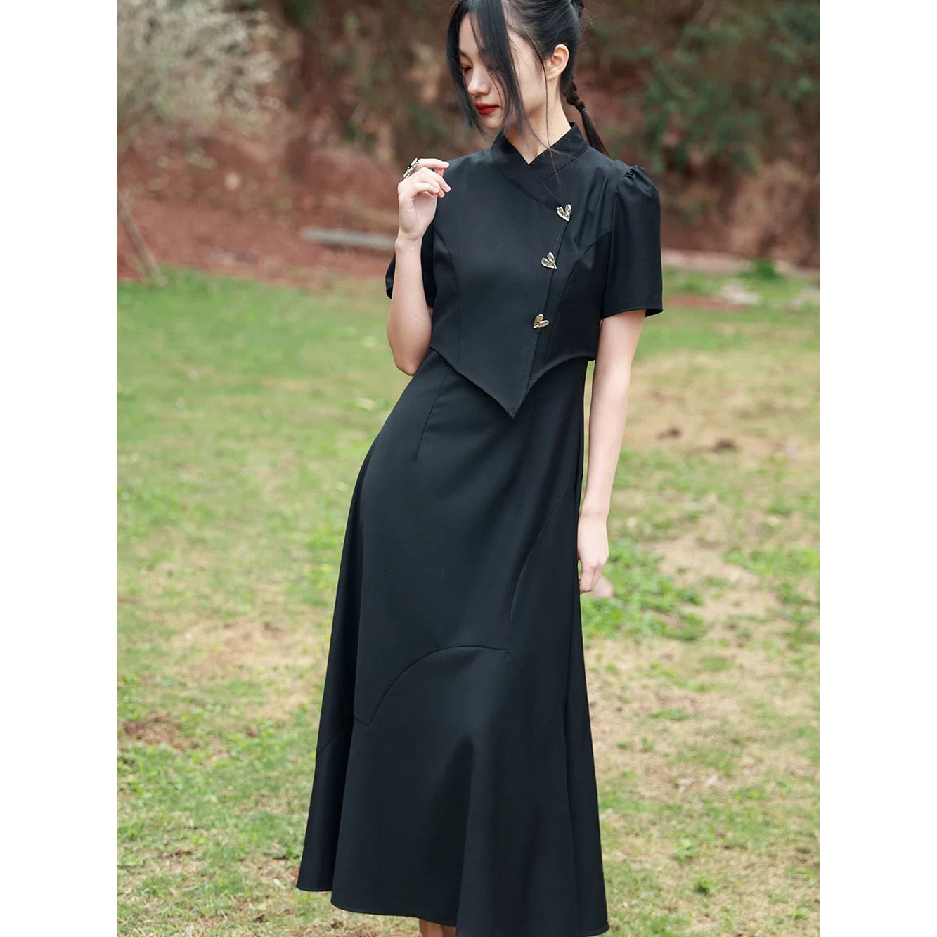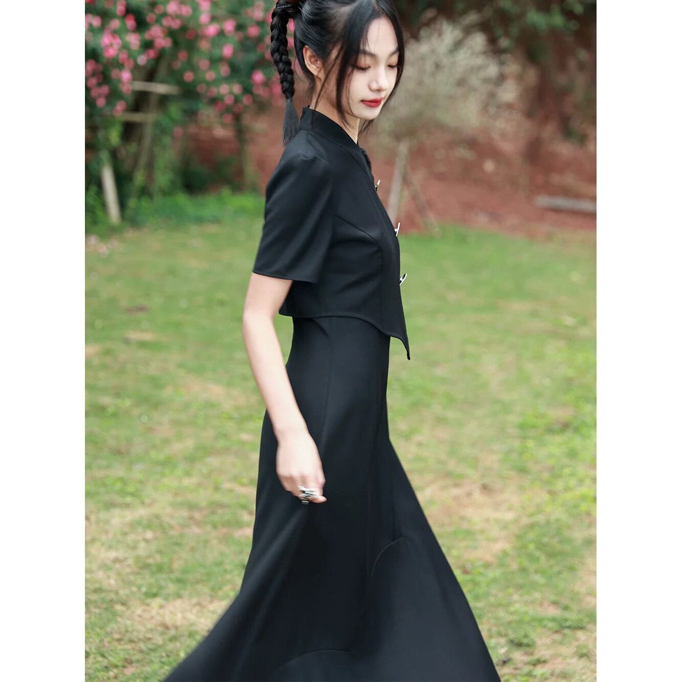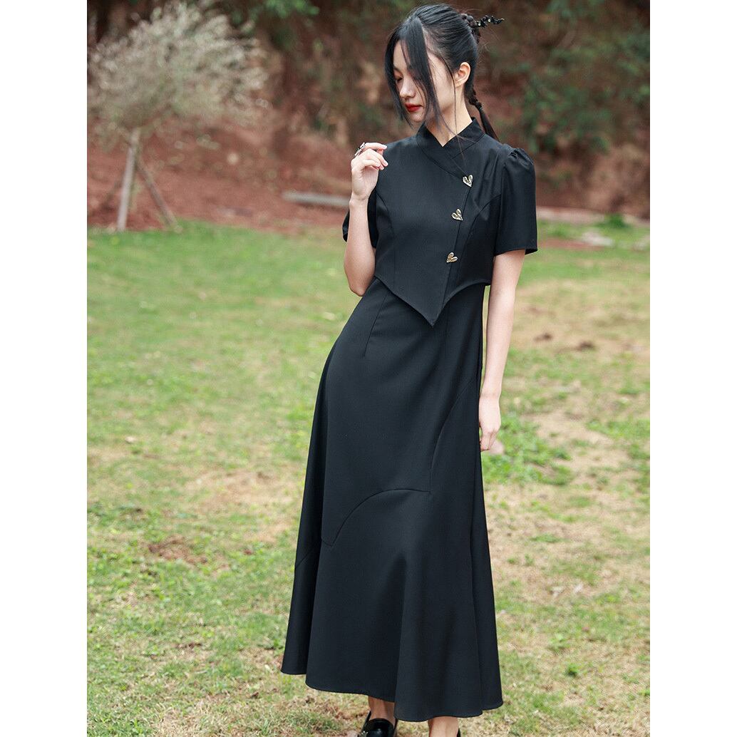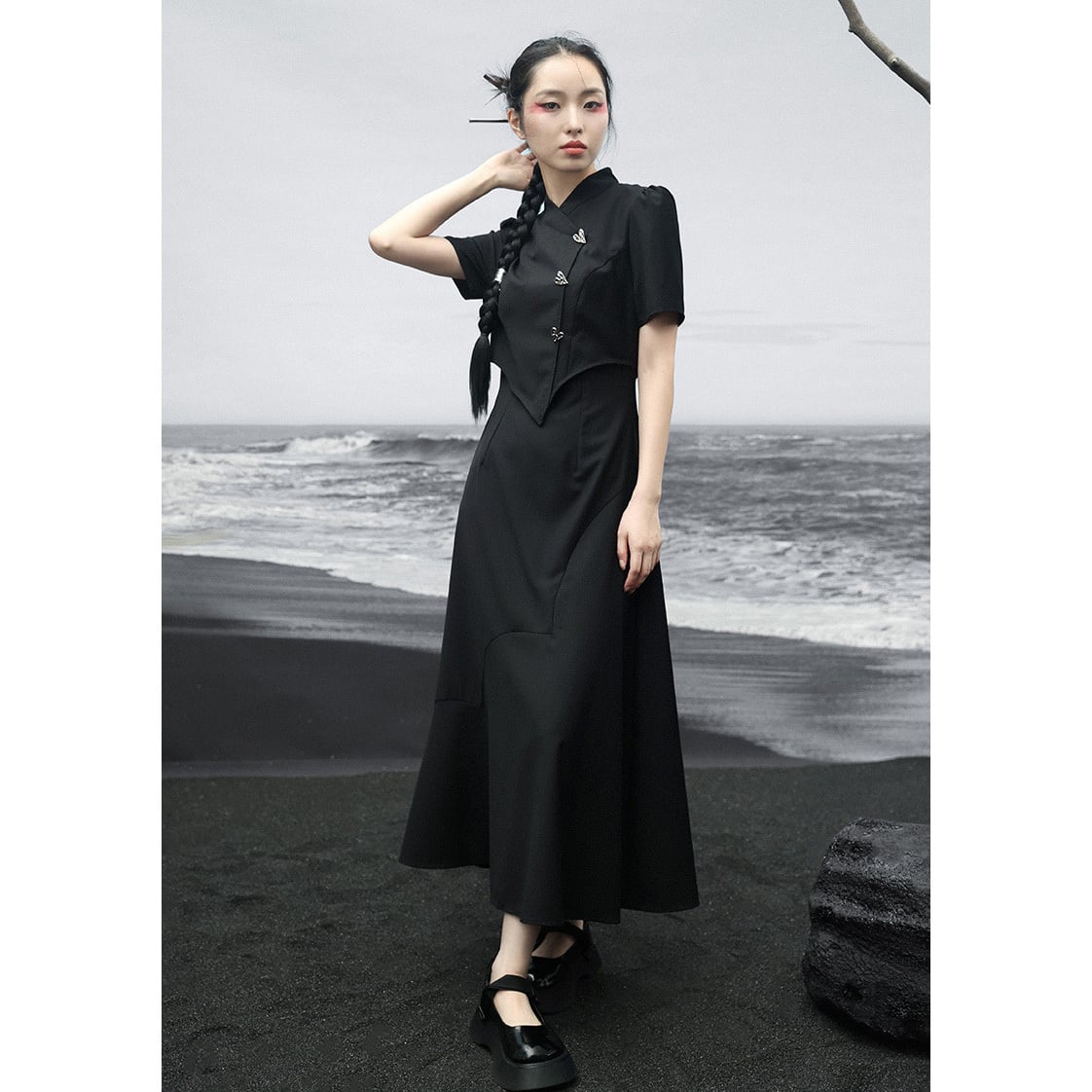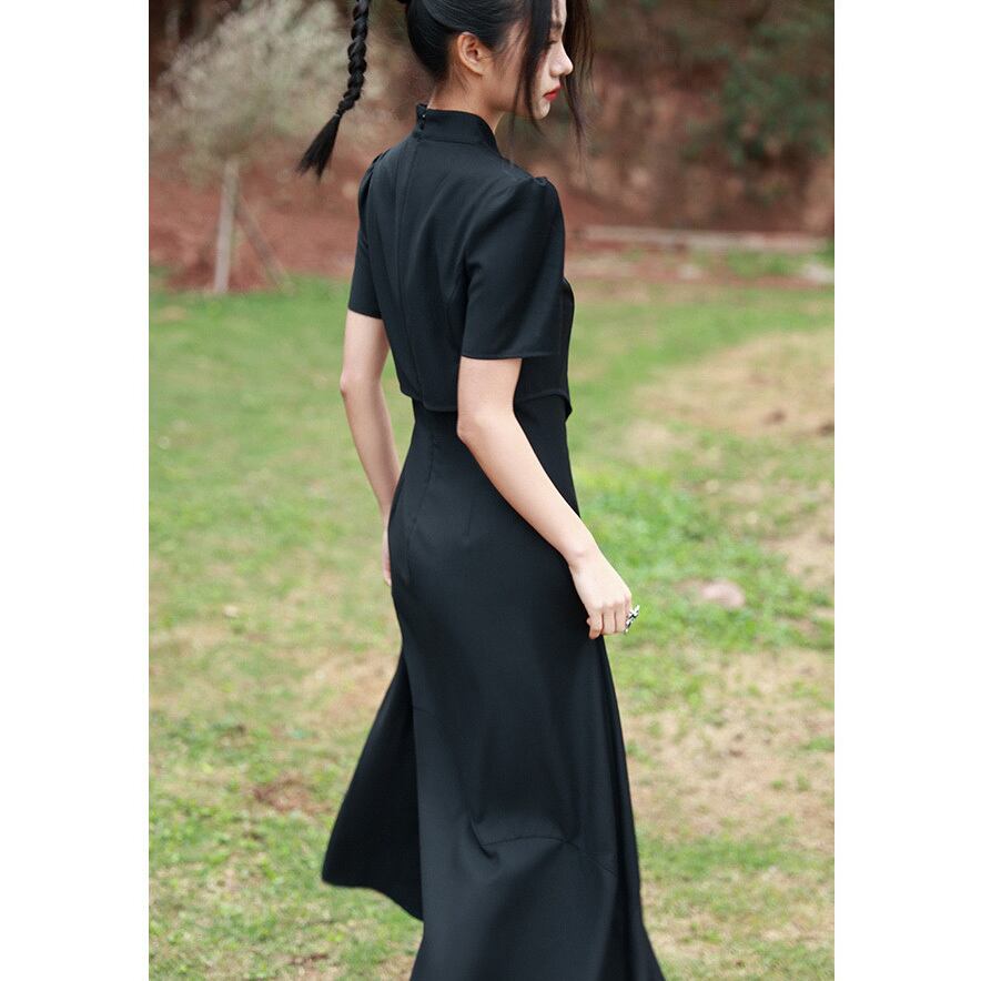 ◇セミ◇【之x大青龍肆】★ワンピース★ブラック フェイクレイヤード チャイナ