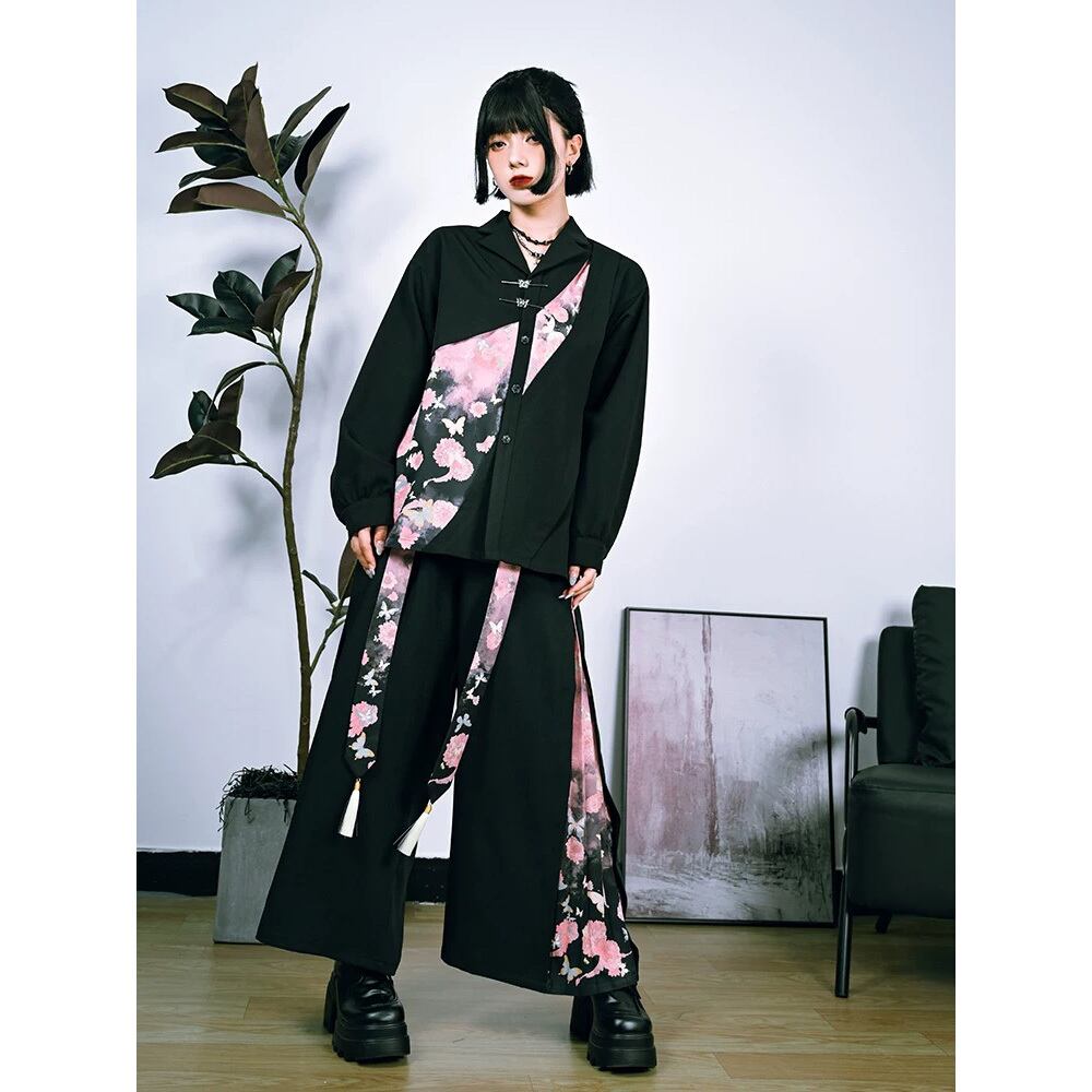 【之x古怪舎】★シャツ・蝶吟★ブラック プリント 暗黒風 蝶々