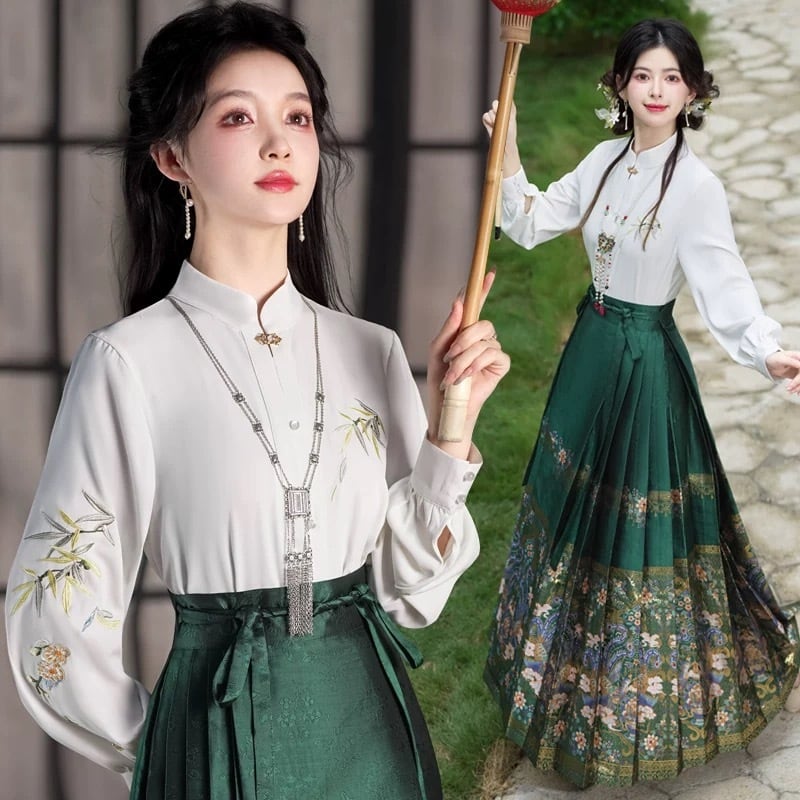 【之】★シャツ★ホワイト 刺繍 チャイナ 結びボタン スタンドネック