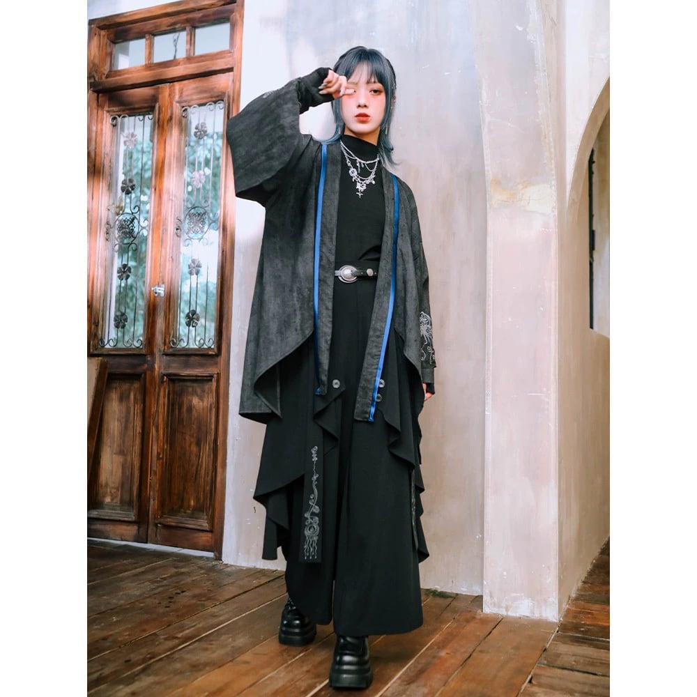 【之x古怪舎】★ズボン・青涙★ブラック チャイナ 刺繍 通勤 高級 キュロット リボン