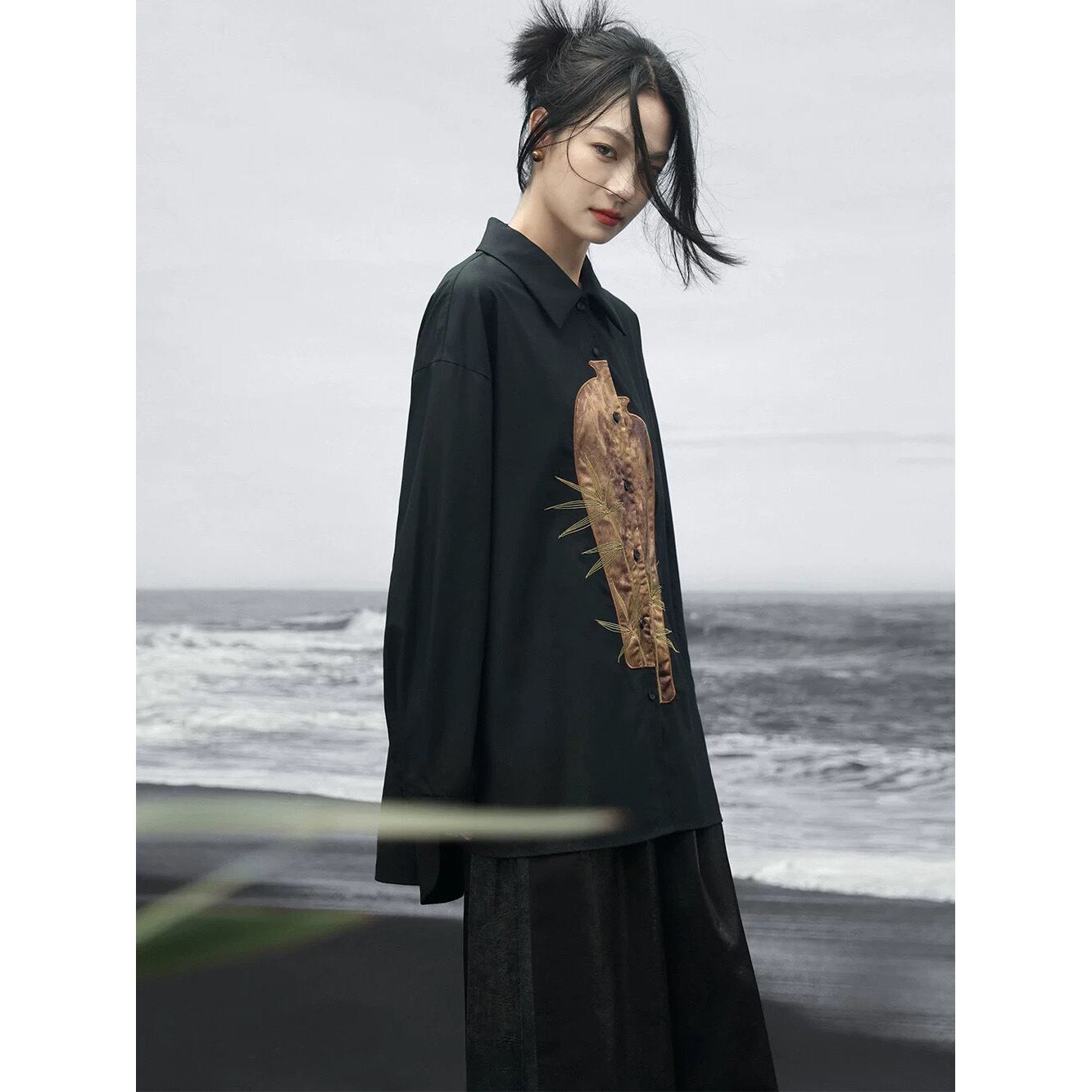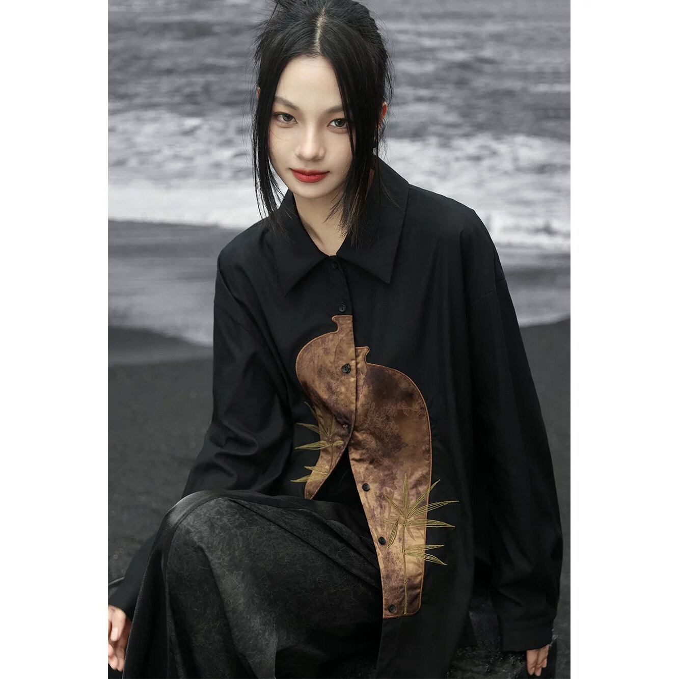 ◇愛される◇【之x大青龍肆】★シャツ★ブラック チャイナ 刺繍 綴り合わせ レディース服