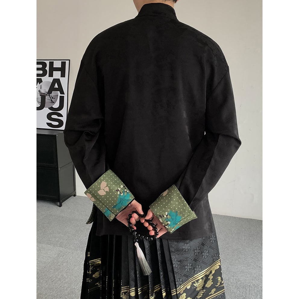【之】★シャツ★ブラック チャイナ 刺繍 唐装 メンズ 秋コーデ | 之