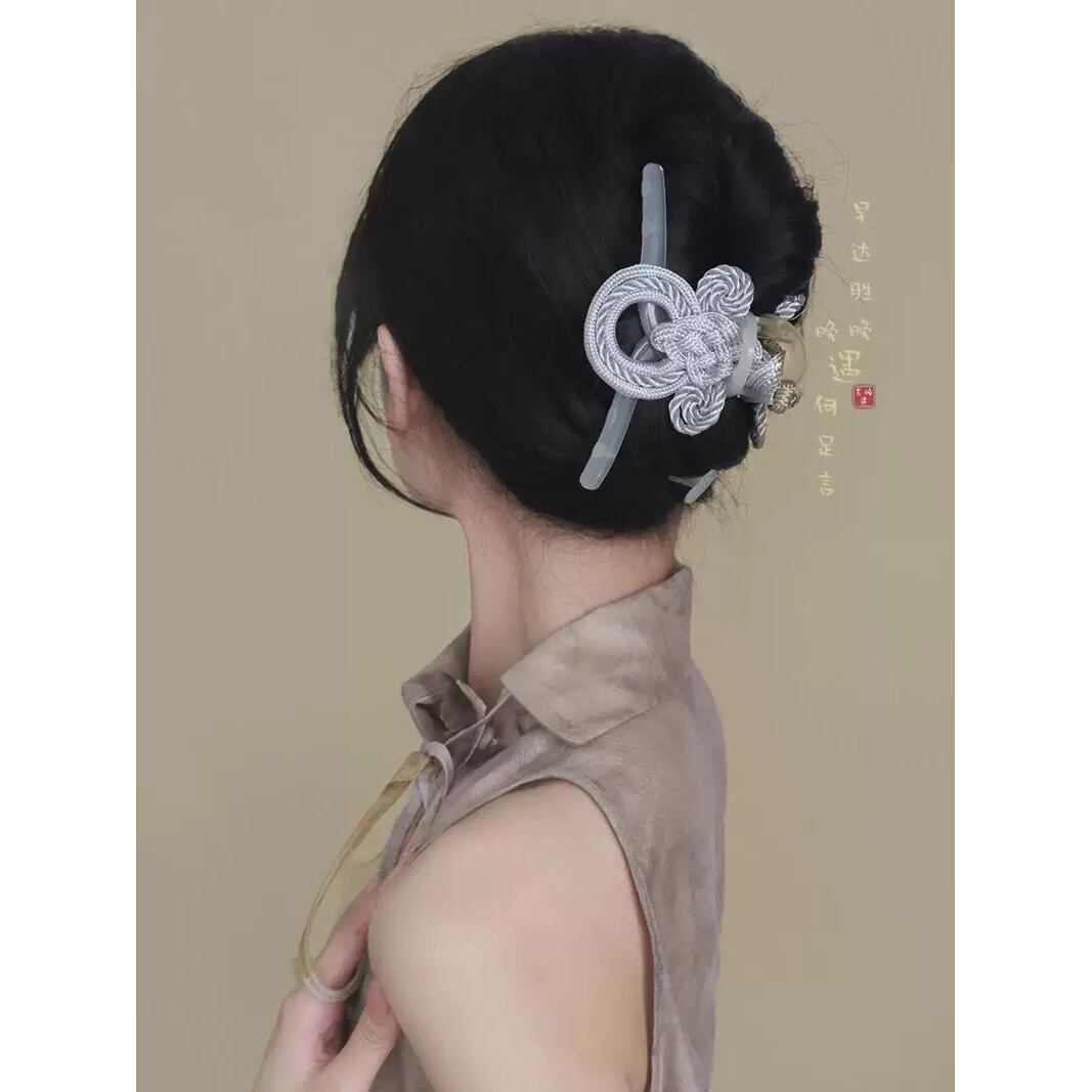 【之】★ヘアクリップ★手作り 民族風 チャイナ 水引結 編み 髪留め