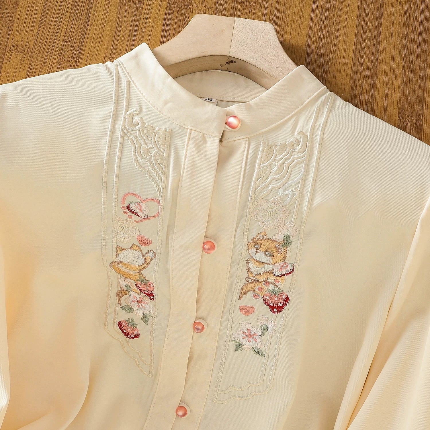 【之】★シャツ★ベージュ チャイナ 刺繍 中華服 長袖 レディース服