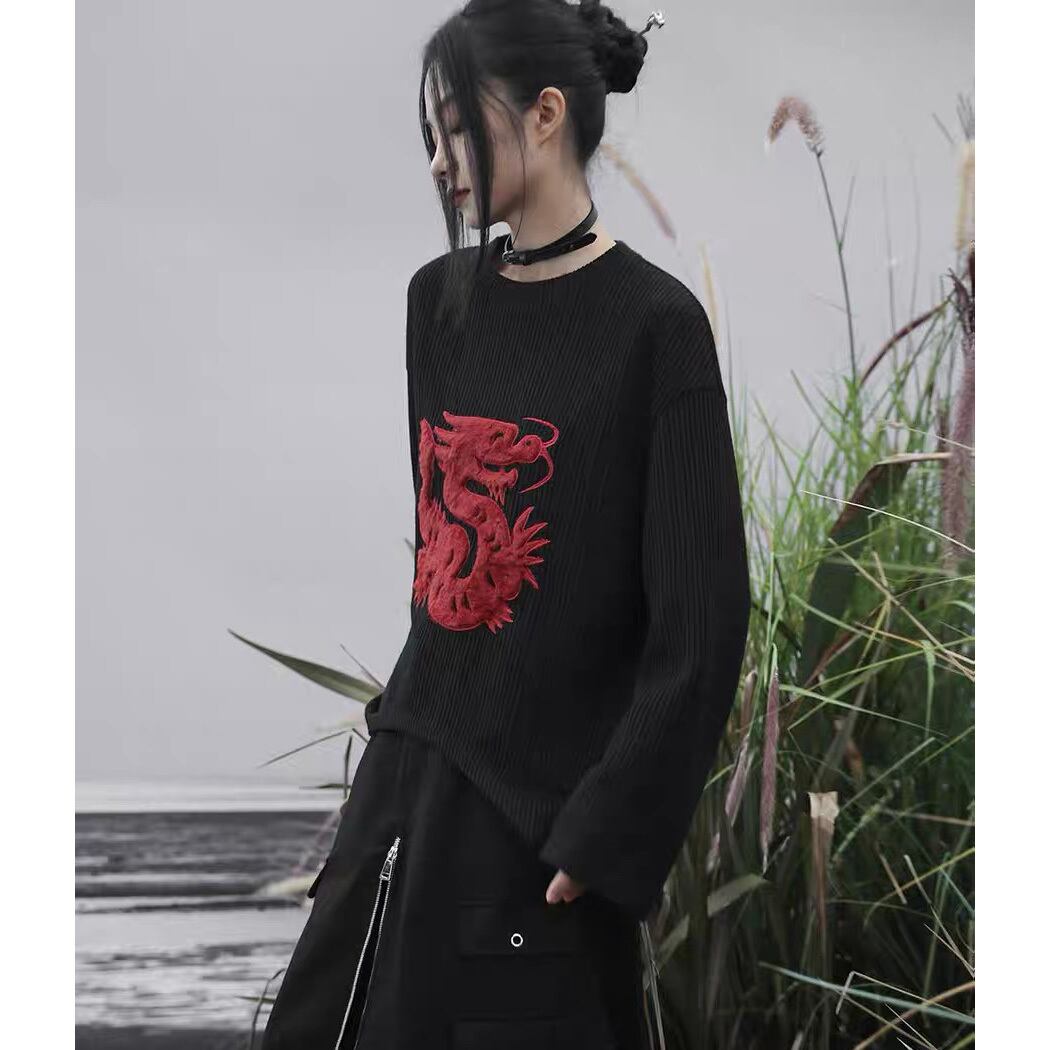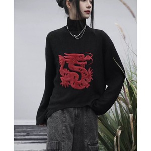 【之x大青龍肆】★セーター★ブラック 龍柄 レディース服