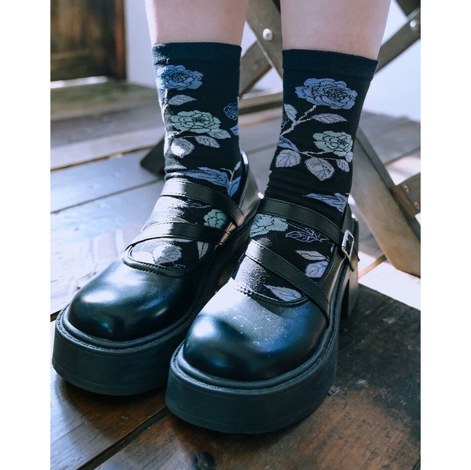 【之x古怪舎】★ソックス・鳥夢★ブラック プリント