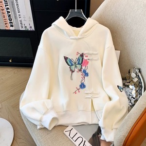 【之】★チャイナ風パーカー★ピンク ホワイト 刺繍 帽子付き 結びボタン 唐装