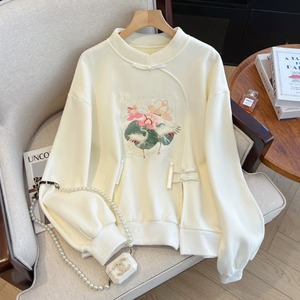 【之】★チャイナ風パーカー★ピンク ブルー ベージュ 刺繍 花柄 結びボタン 唐装