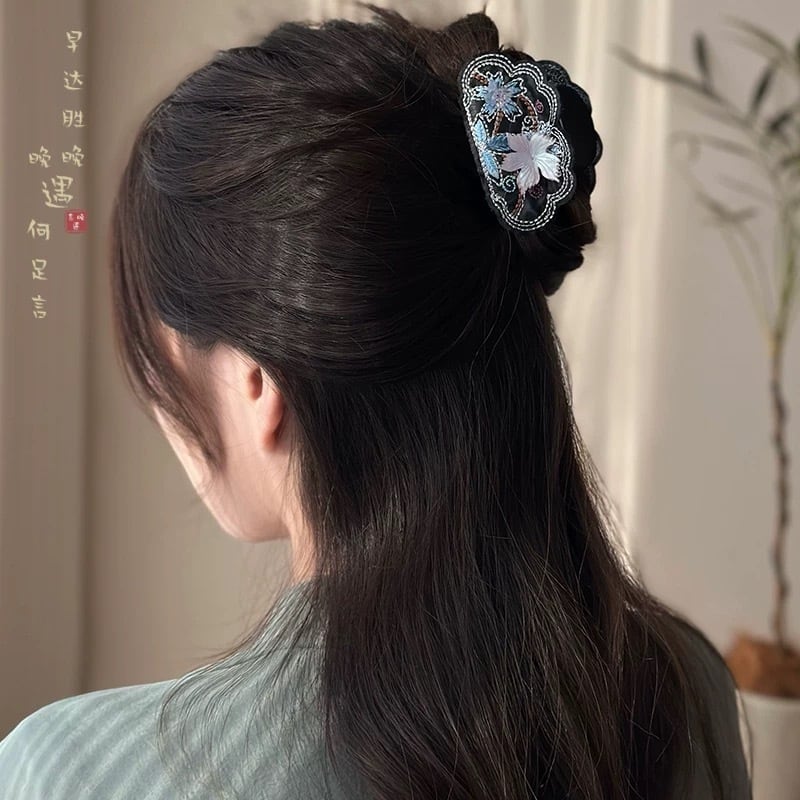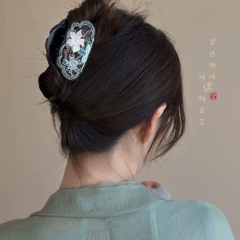 【之】★ヘアクリップ★手作り 民族風 チャイナ 刺繍 編み 髪留め タッセル