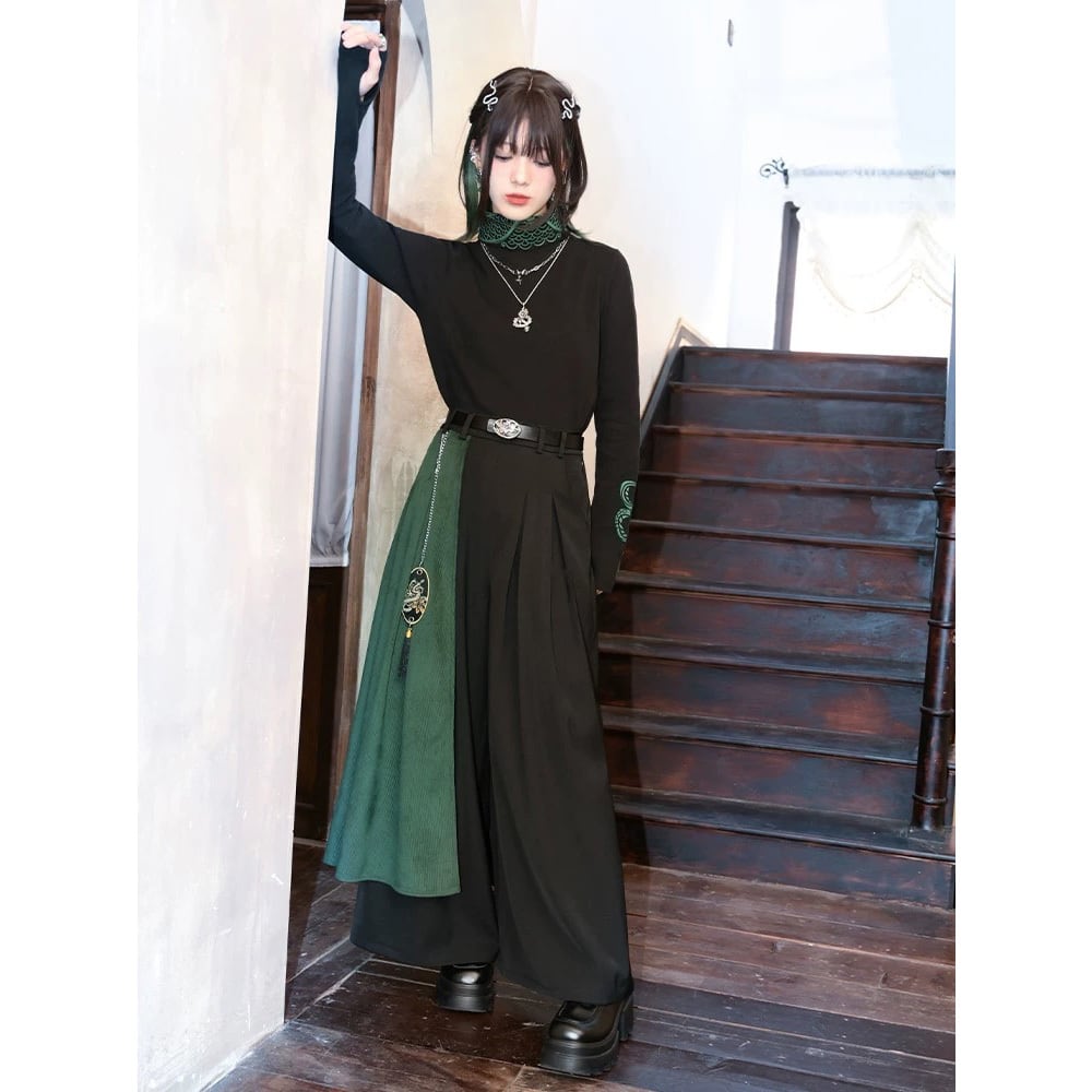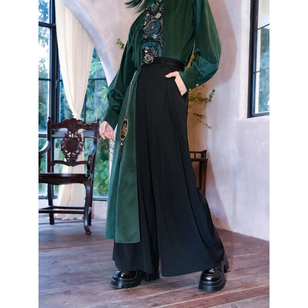 【之x古怪舎】★ワイドパンツ・昇卿★ブラック プリント 漢服 中国ファッション レディース 入学式 卒業式