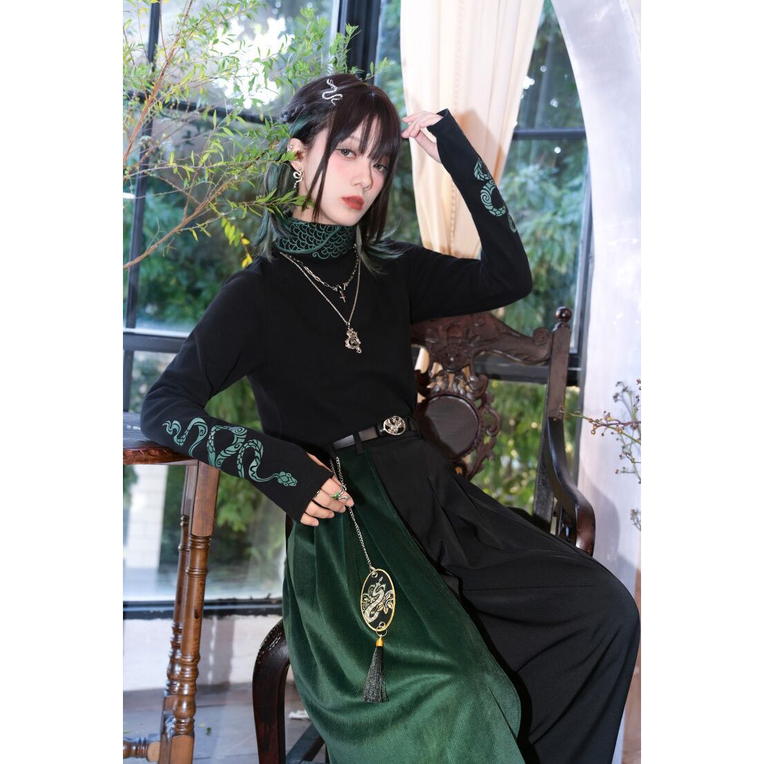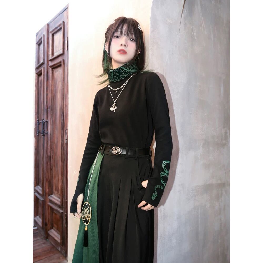【之x古怪舎】★インナー・昇卿★ブラック プリント 漢服 ハイネック 中国ファッション レディース 入学式 卒業式