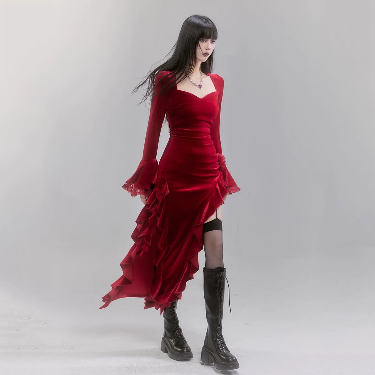 ✪幽霊少女シリーズ✪【之】★ワンピース★レッド ドレス レディース パーティー 二次会