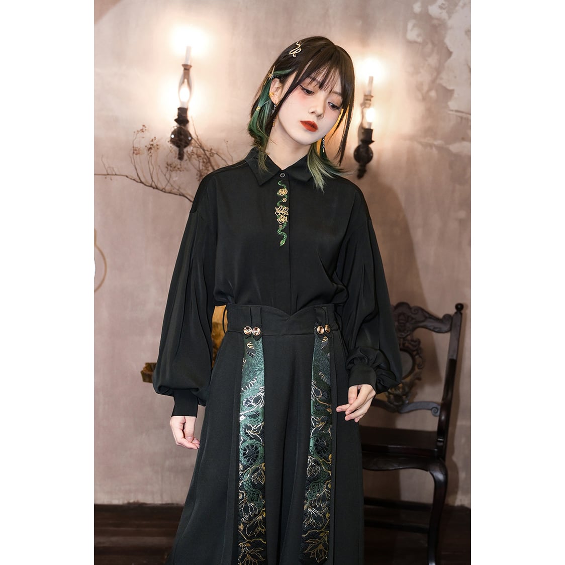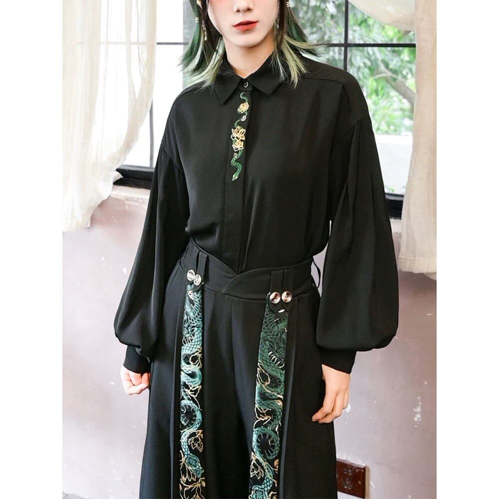 【之x古怪舎】★シャツ・昇卿★ブラック 刺繍 中国ファッション 蛇柄